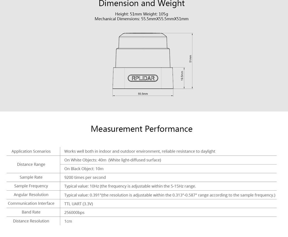 Due to the improvements in SLAMTEC hardware operating performance and related algorithm, RPLIDAR S1 works well in all kinds of indoor environment and outdoor environment with direct sunlight.