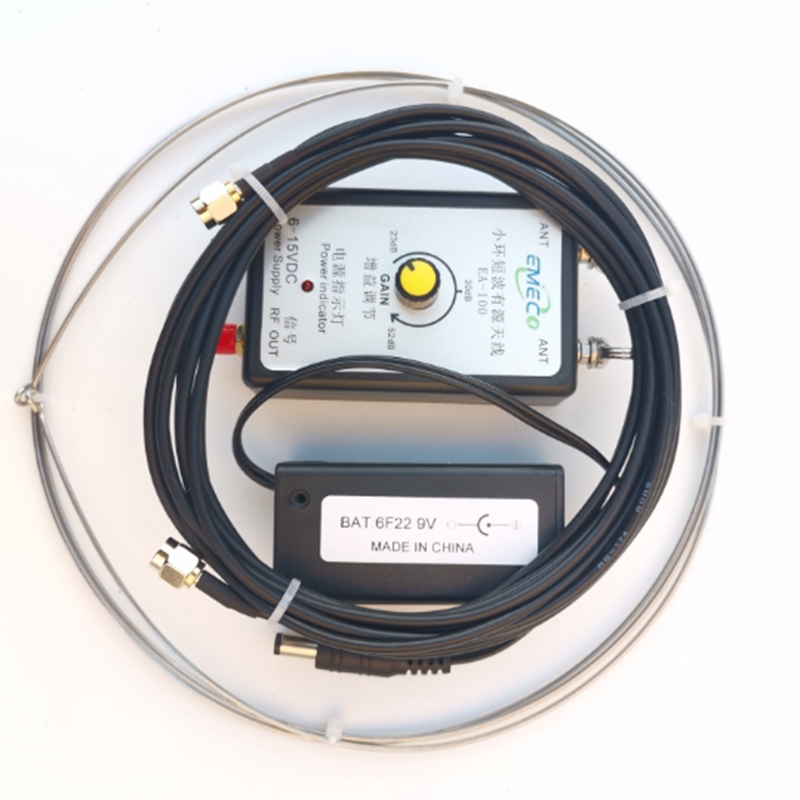 - Install the battery and SMA feeder, round the antenna ring with 2mm diameter and 60cm ring, and fix it in the twist angle screw, and insert the other end of the antenna into the external antenna port of the radio or the antenna input port of the SDR receiver.