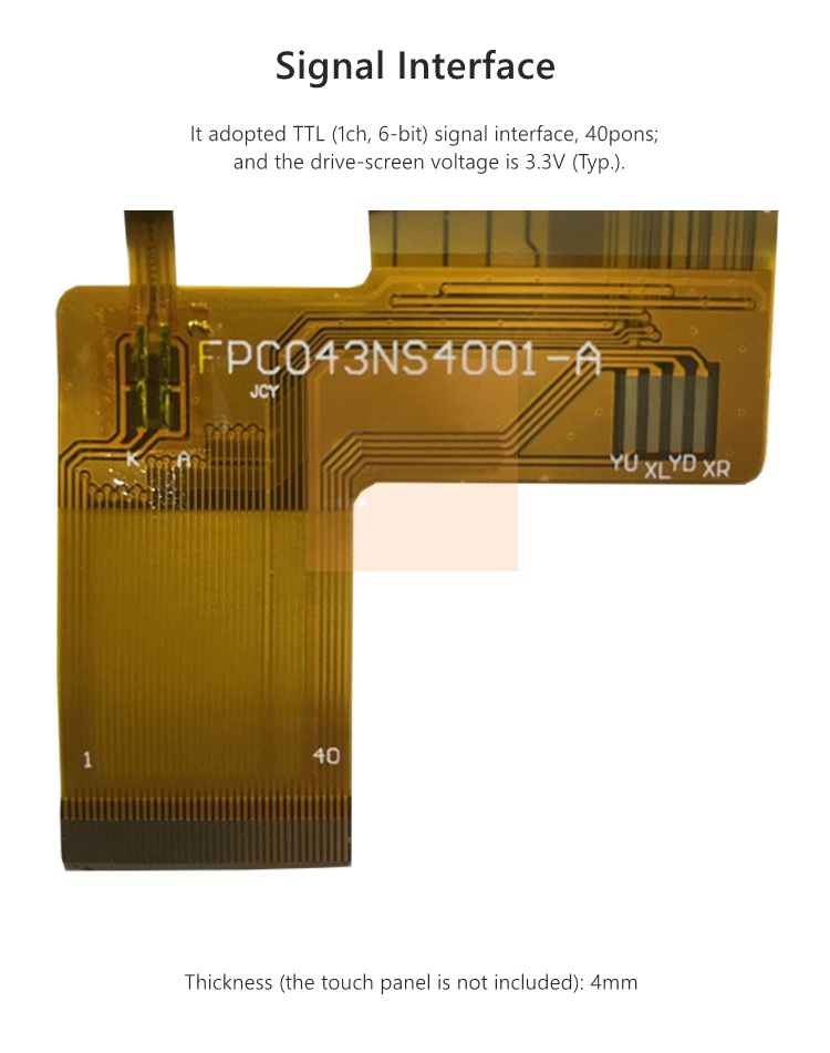 4.3inch LCD Screen 40Pin Display Screen with Touch Panel for General AT043TN24 V1 AT043TN25 V2