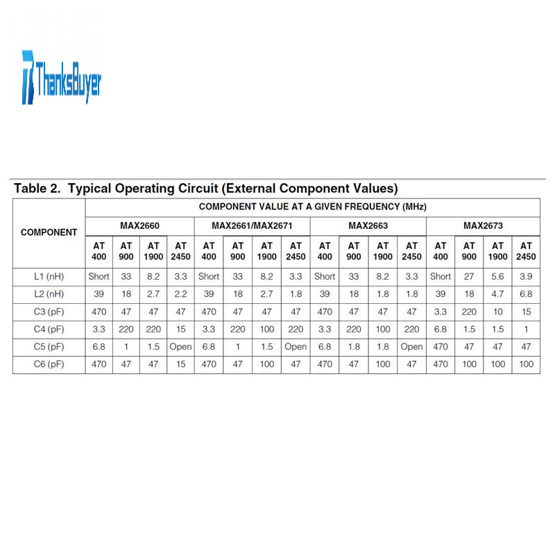 - Low Noise Figure: 9.3dB (900MHz, MAX2671)