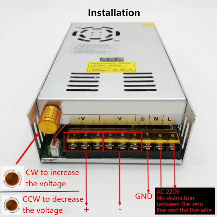 0-48V 10A (can be adjusted to 50V); 3-digit display