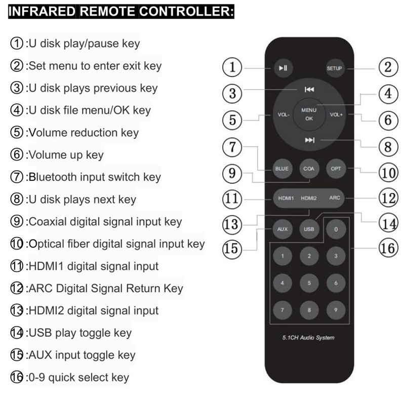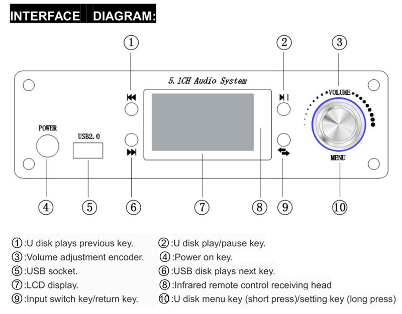 - Support U disk to play any music. Output sound through optical fiber and coaxial or 5.1 interface.