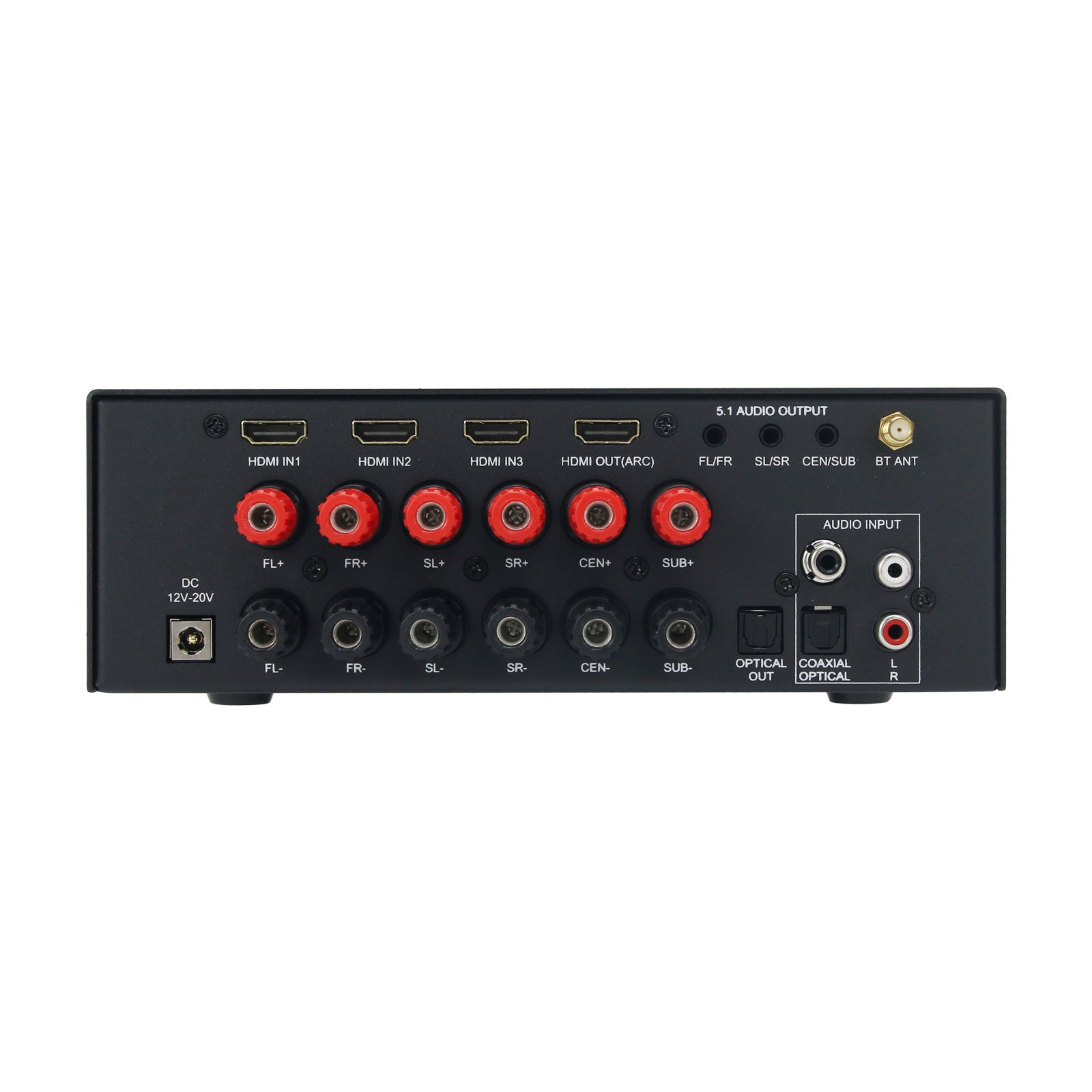 - Multiple input interfaces: HDMIX3+ARC, optical, coaxial, USB 2.0, Bluetooth 5.0, 2/6 channel speaker output and digital audio optical output (except USB Bluetooth and AUX input, there is output in other input modes)