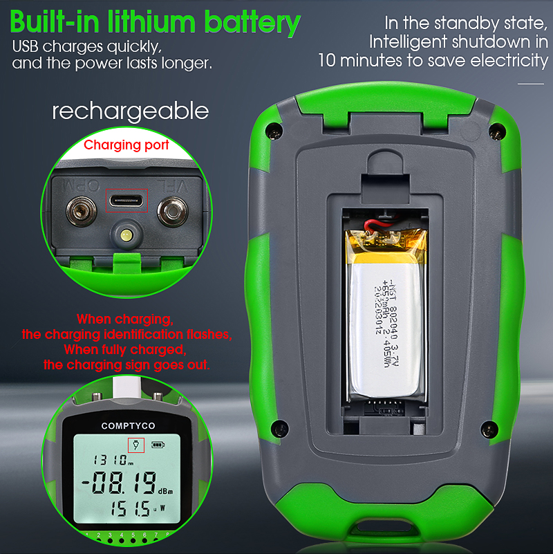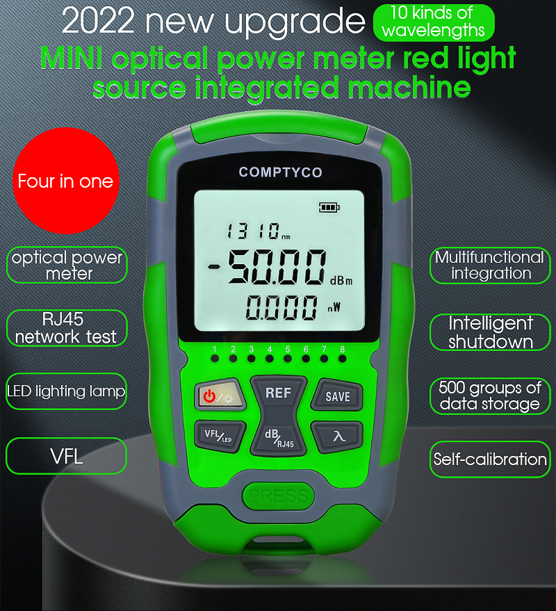 -50 ~ +26dBm AUA-MC50 50MW 4 in 1 Mini OPM Rechargeable Optical Power Meter Red Light Integrated Machine