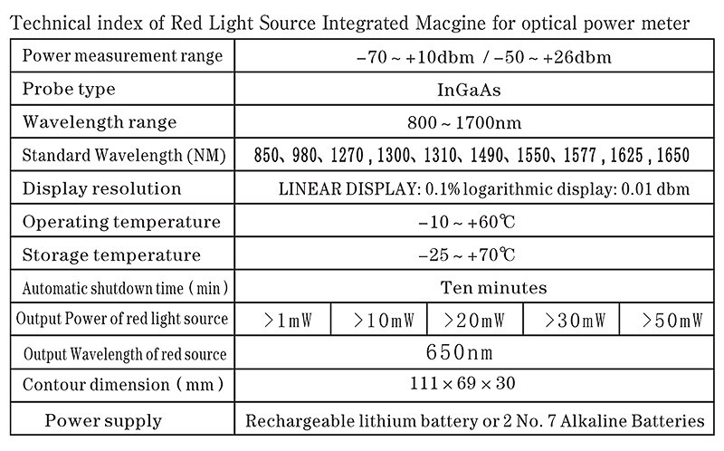 - High precision and high quality detector with measurement error less than±0.2dB (manual calibration is available)
