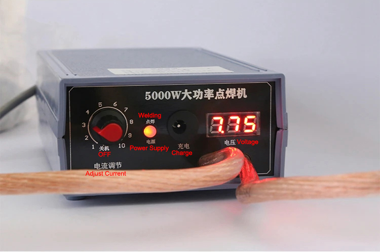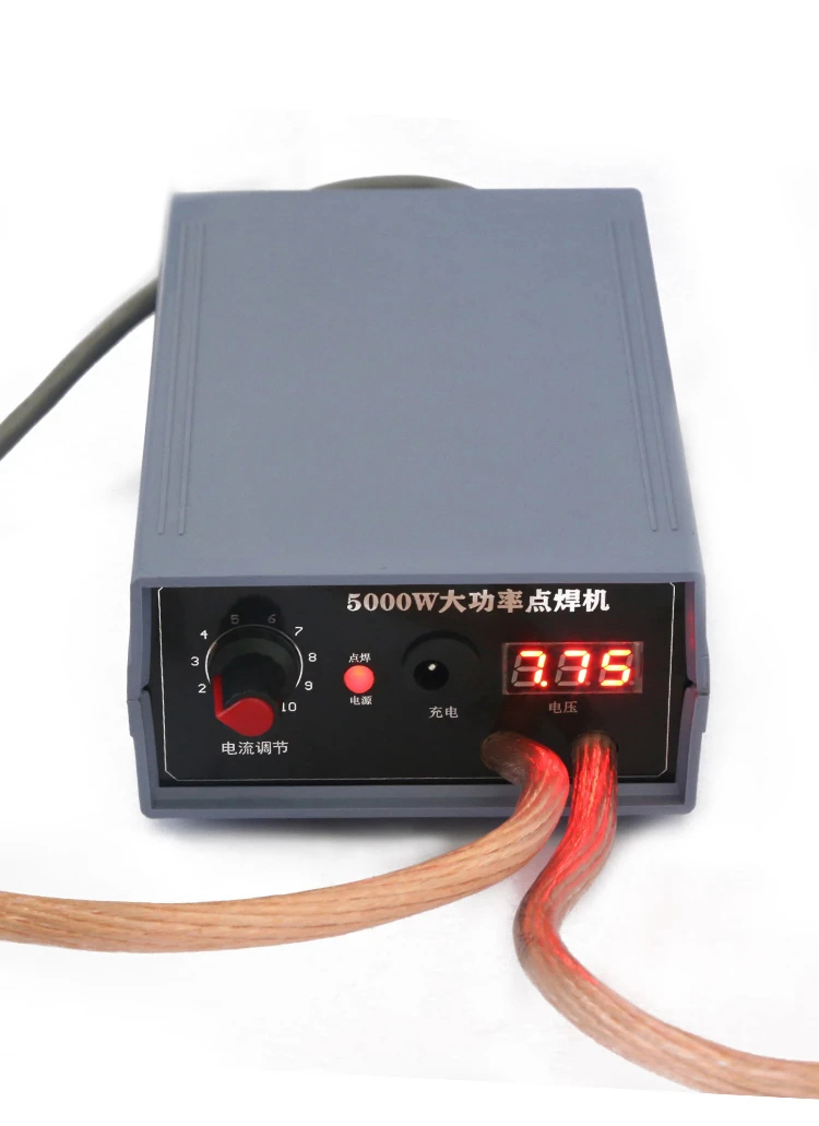- Welding: Two welding pens are placed on the nickel sheet for welding. The output current can be adjusted by the knob. The larger the value, the higher the output current.