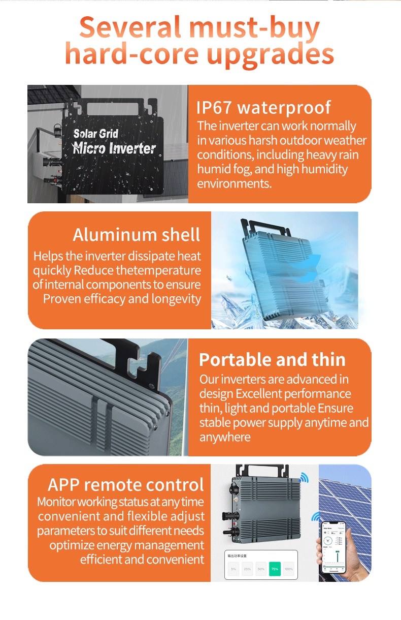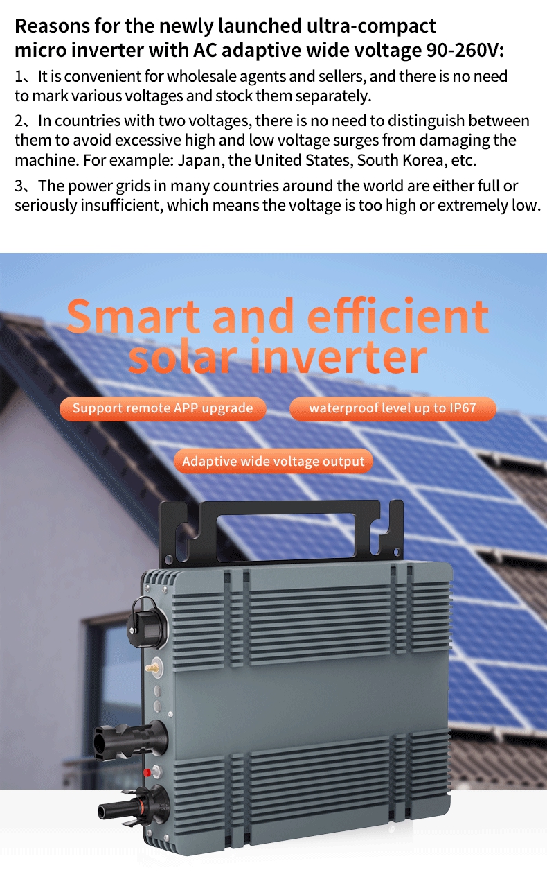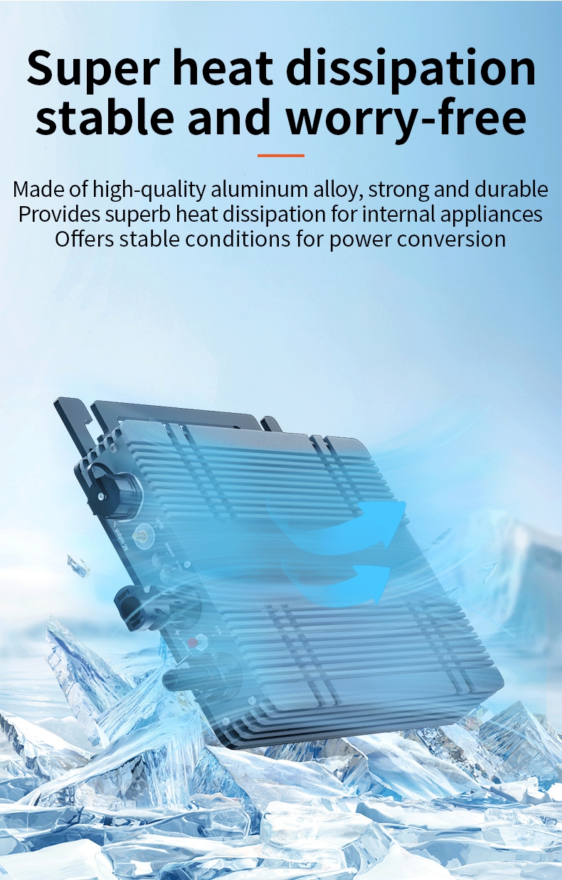 500W Intelligent Solar Grid Micro Inverter Ultra-thin Version 22V-48V MPPT Aluminum Alloy Wide Voltage Inverter