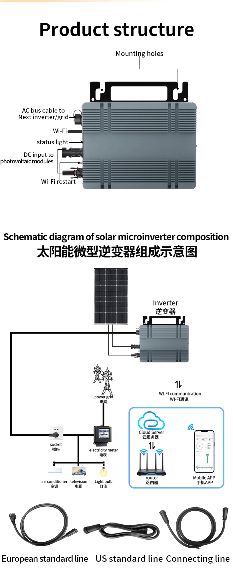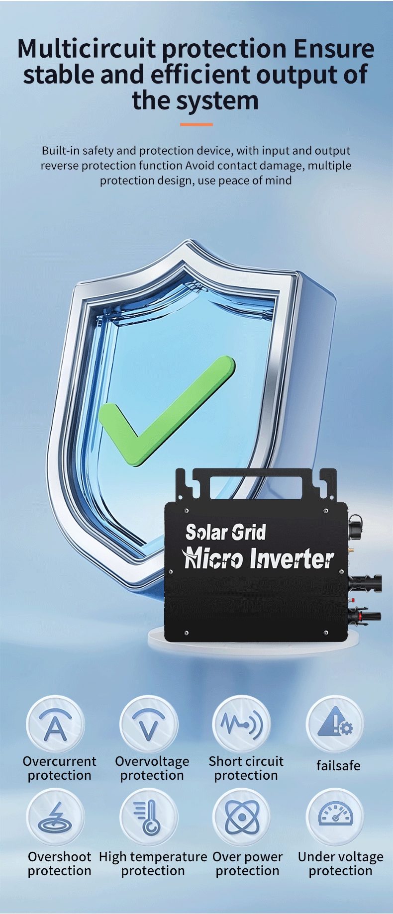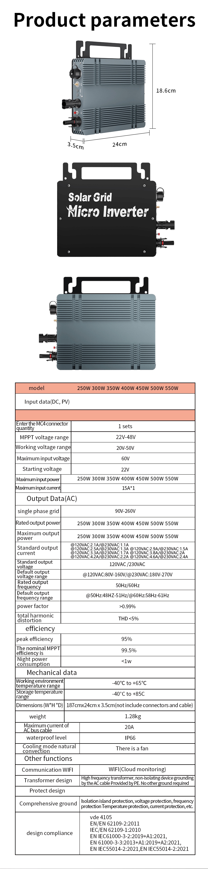 500W Intelligent Solar Grid Micro Inverter Ultra-thin Version 22V-48V MPPT Aluminum Alloy Wide Voltage Inverter