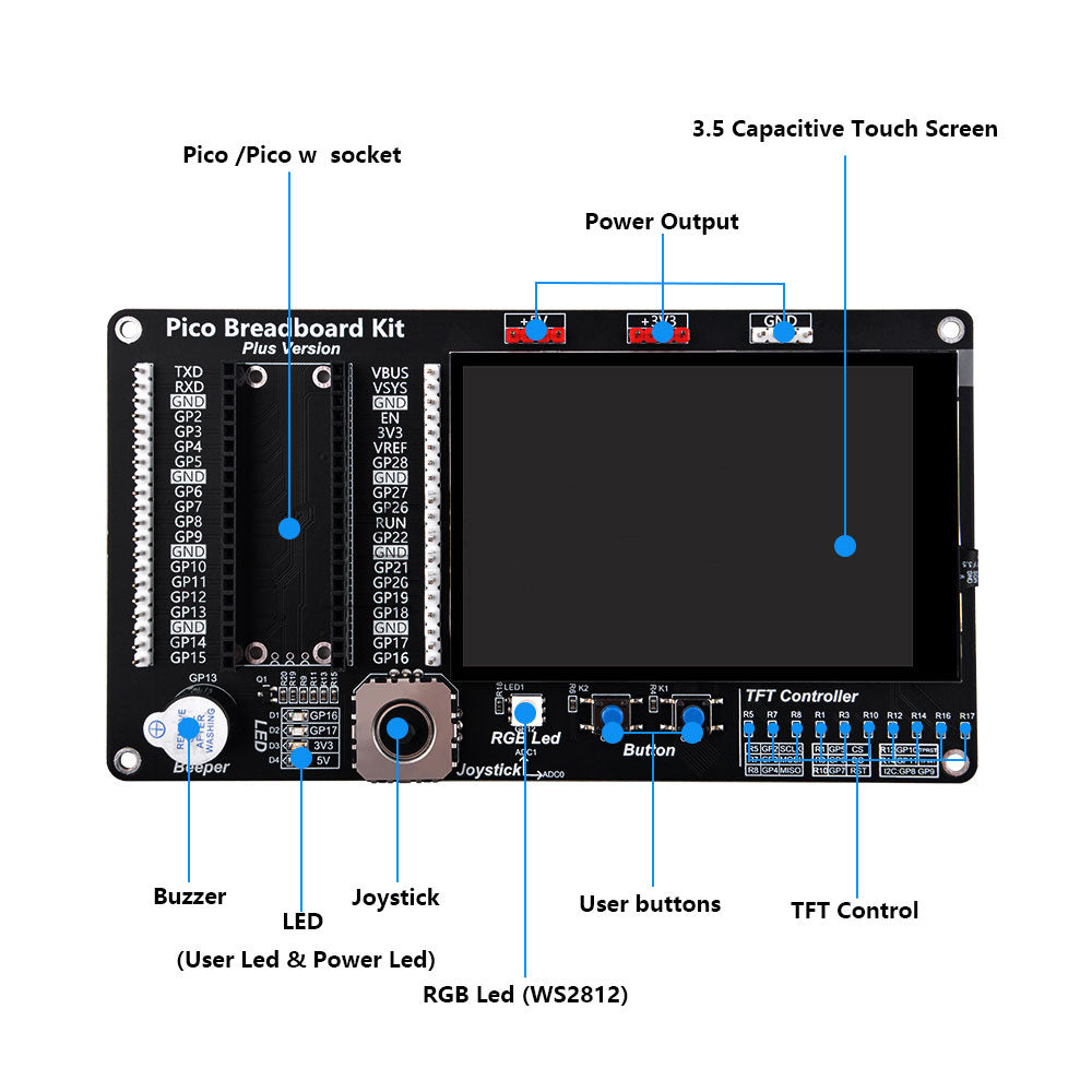 52Pi Pico Expansion Board Kit Built-in Mini Joystick with 3.5-inch Touch Screen for Raspberry Pi Pico