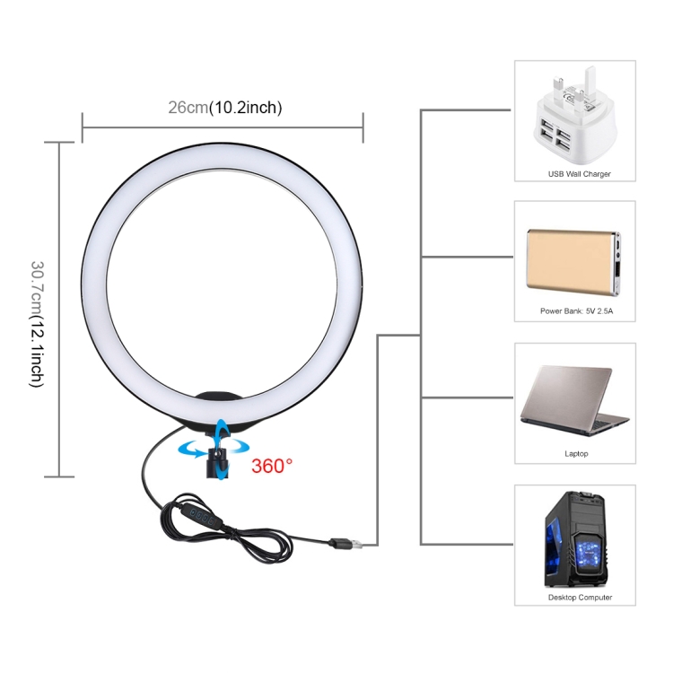 5. The USB ports can be used with multiple devices, such as connect computer host, laptop, mobile power and USB charger. You will be able to enjoy LED ring light at any time free.