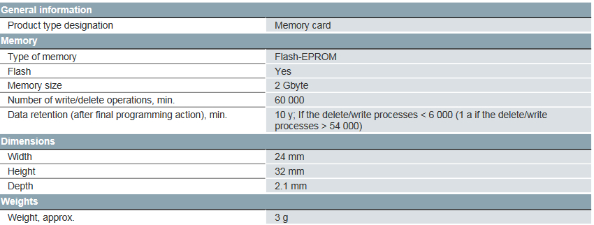 For SIMATIC S7, memory cards for S7-1x 00 CPU, 3, 3V Flash, 2 GB