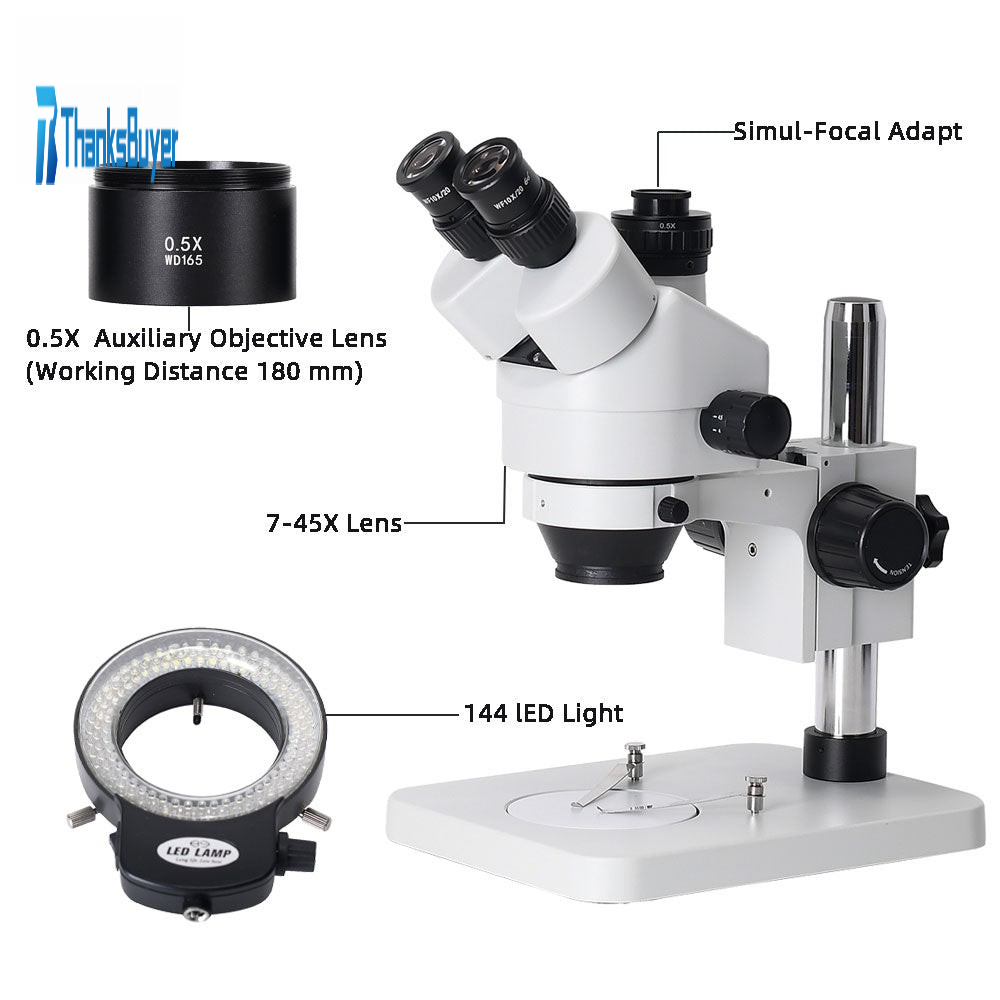 7045 Simul-Focal Trinocular Microscope 3.5-50X Stereo Digital Industrial Microscope Video Camera for Soldering Repair