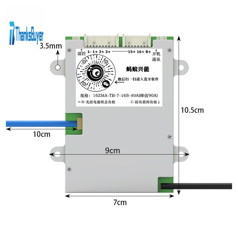 7S to 16S 40A (Peak 90A) Lithium Battery Protection Board w/ 3.8" LCD for Electric Vehicle Batteries