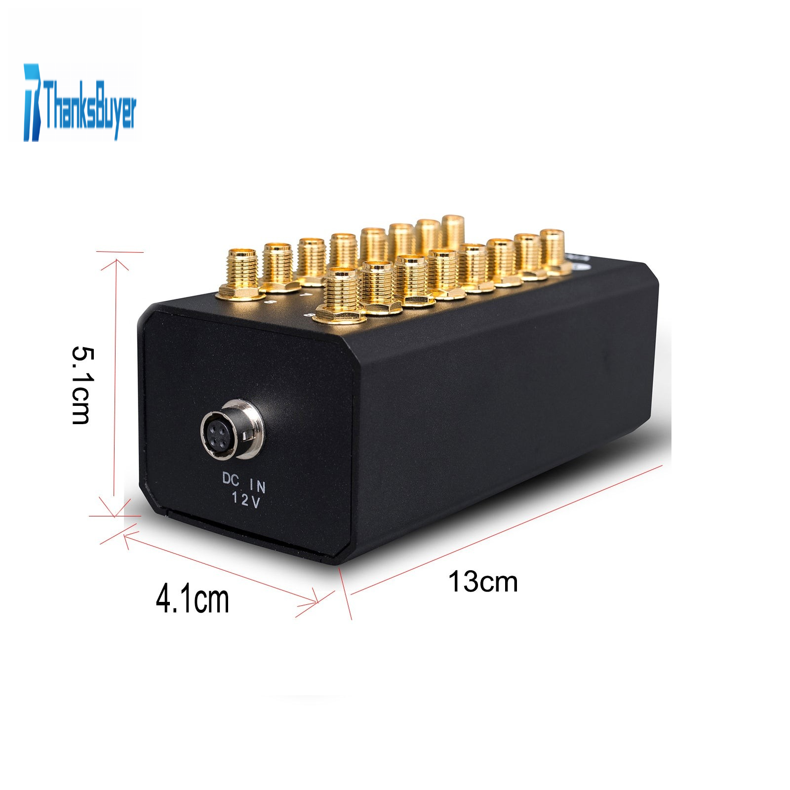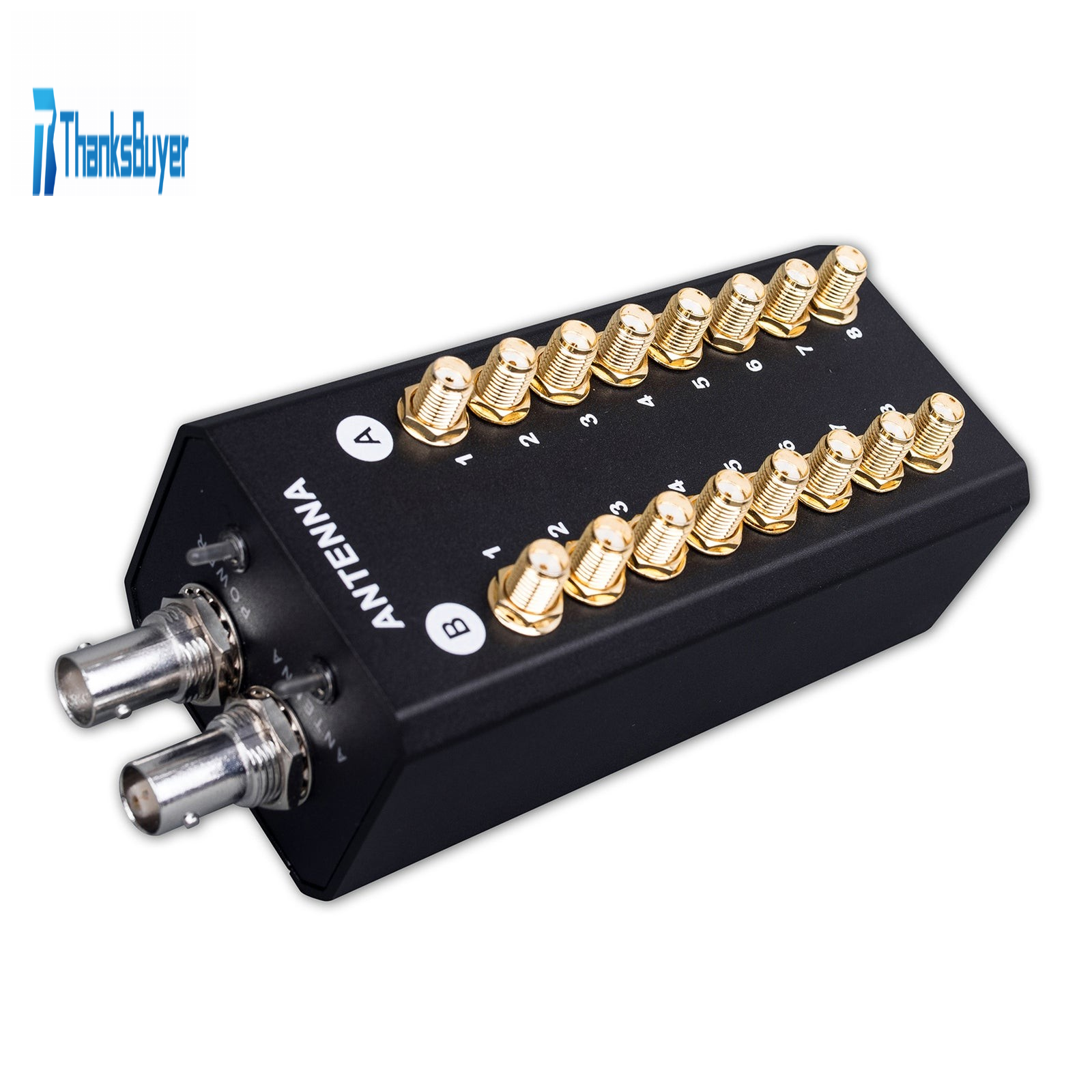 - Two BNC input socket can connect two 500-950MHz active antenna ,and every BNC socket can distribute eight SMA output socket to connect the antenna socket of the wireless receiver. So two BNC input socket can distribute total 16SMA output socket , two group1X8 RF distributor.