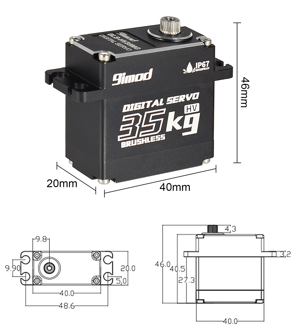9imod 35KG 270° Digital Servo HV Brushless Servo Metal Gear IP67 BLS-HV35MG for RC Car Boat Robot