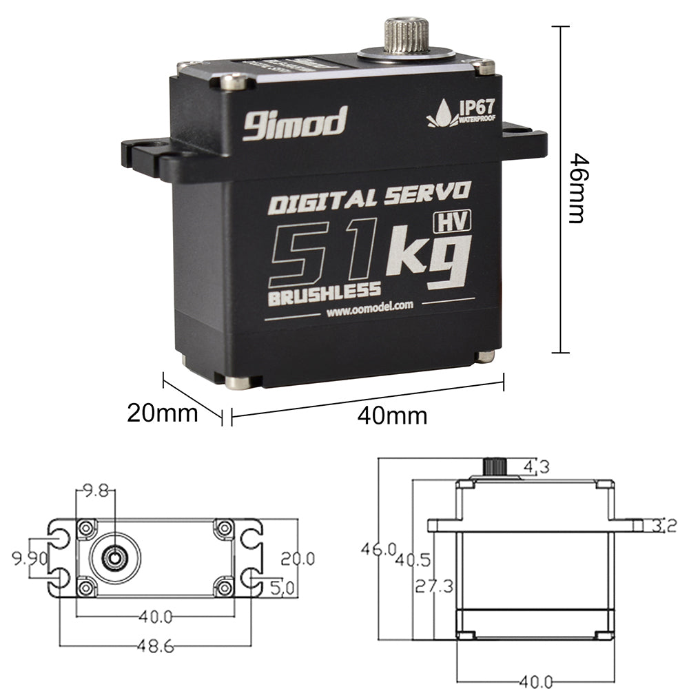 9imod 51KG 180° Digital Servo Waterproof Brushless Servo Metal Gear BLS-HV51MG for RC Car Boat Robot