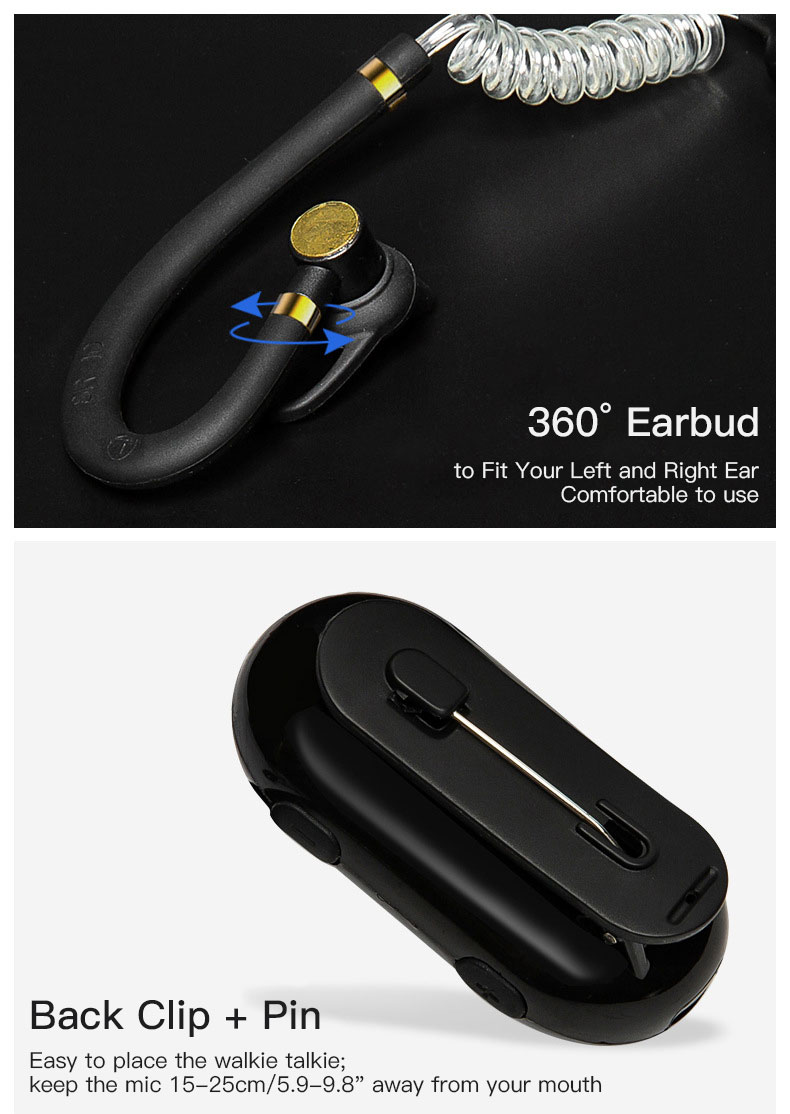 A8 400-470MHz 3KM In Ear Walkie Talkie Rechargeable Mini Walkie Talkie with 360° Swivel Earbud