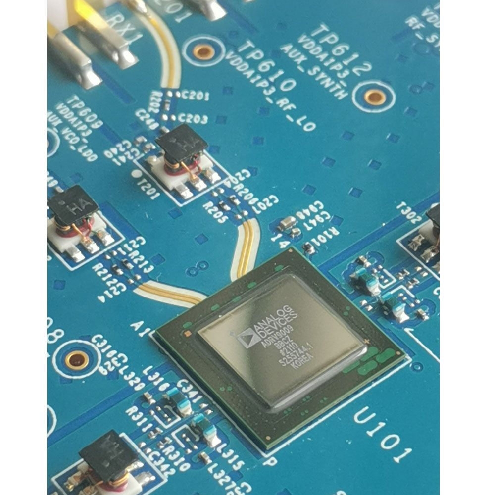 ADRV9009-W/PCBZ can work in a wide tuning range from 75MHz to 6GHz, but the RF performance is corrected by the extremely wide bandwidth front-end matching. This board is mainly used for the software development team to conduct system research and provide various waveforms before the customized hardware is completed. The designer's purpose is to view the waveform, not to care about the performance of the last 1 dB or 1% EVM.