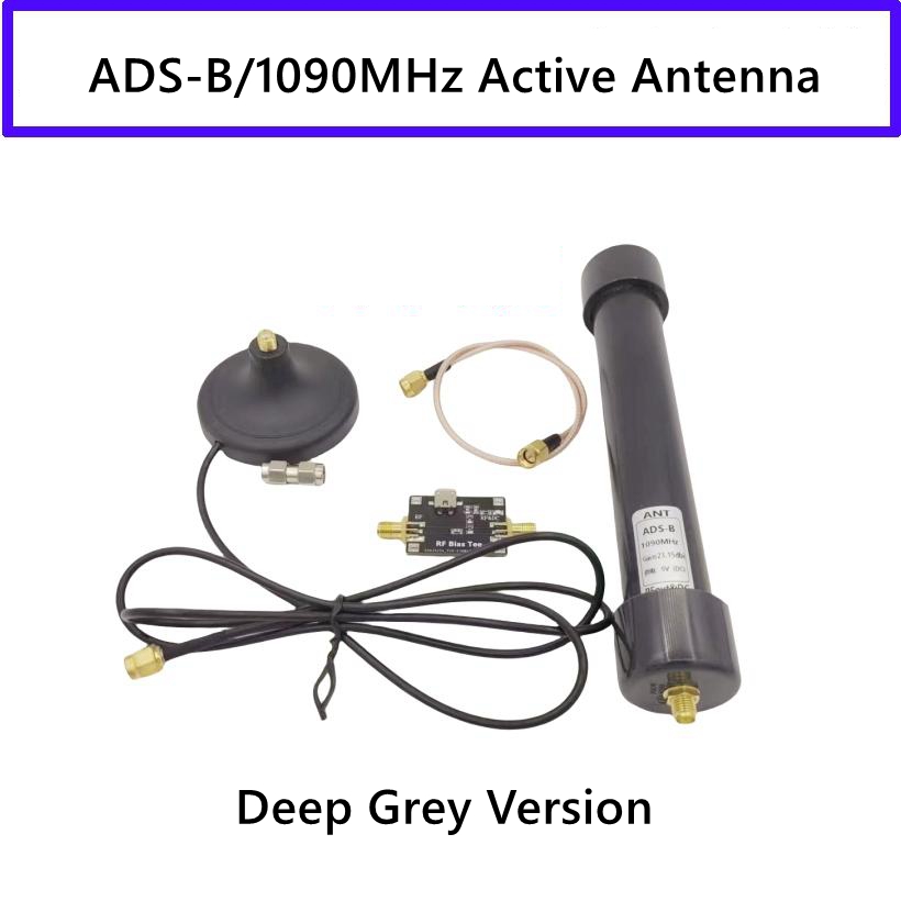 ADS-B 1090MHz Deep Grey Active Antenna DC5V Bias Tee 23.15dBi High Gain RF Receiving Antenna with Pedestal
