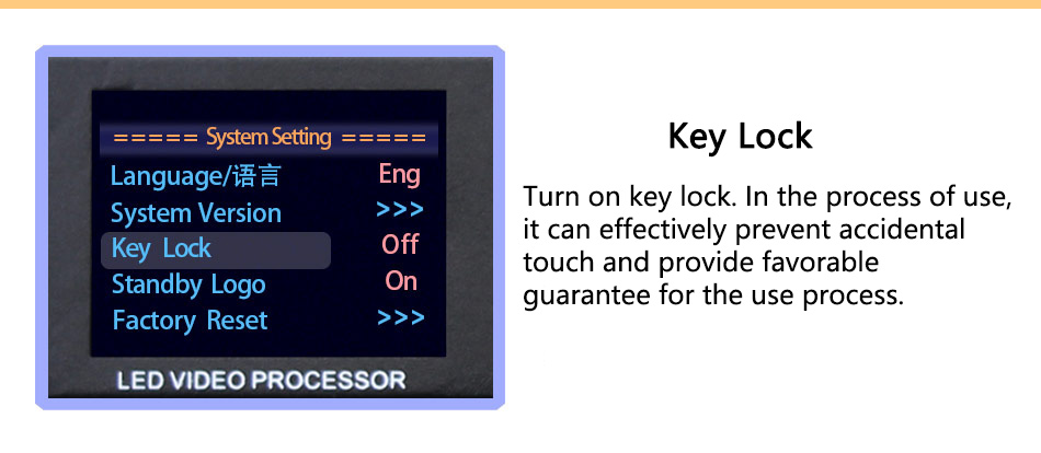 - Key Lock: Turn on the key lock. In the process of use, it can effectively prevent accidental touch and provide favorable guarantee for the use process.