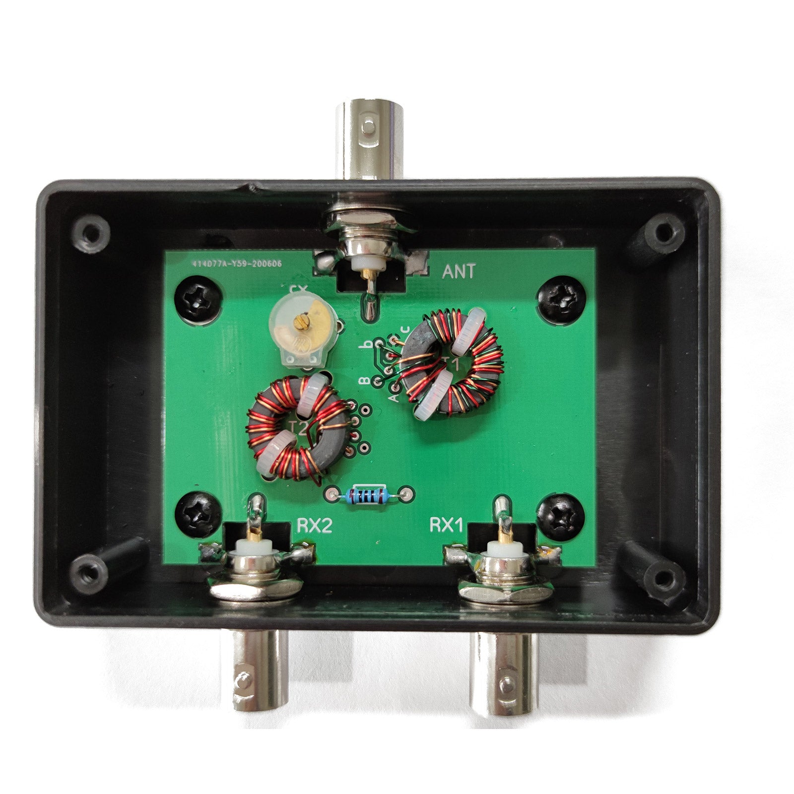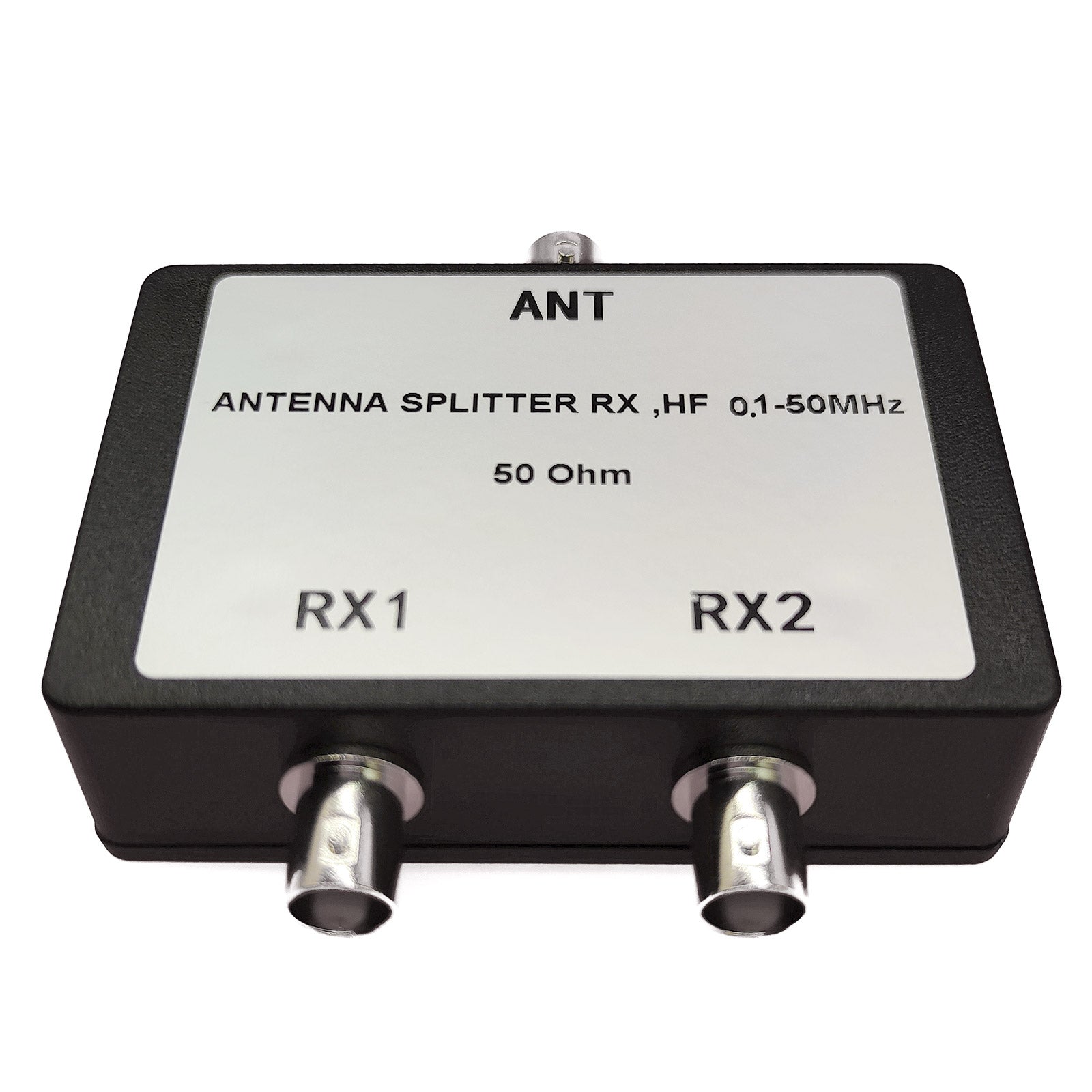 The HF Antenna RX splitter has one antenna port and two receivers ports.