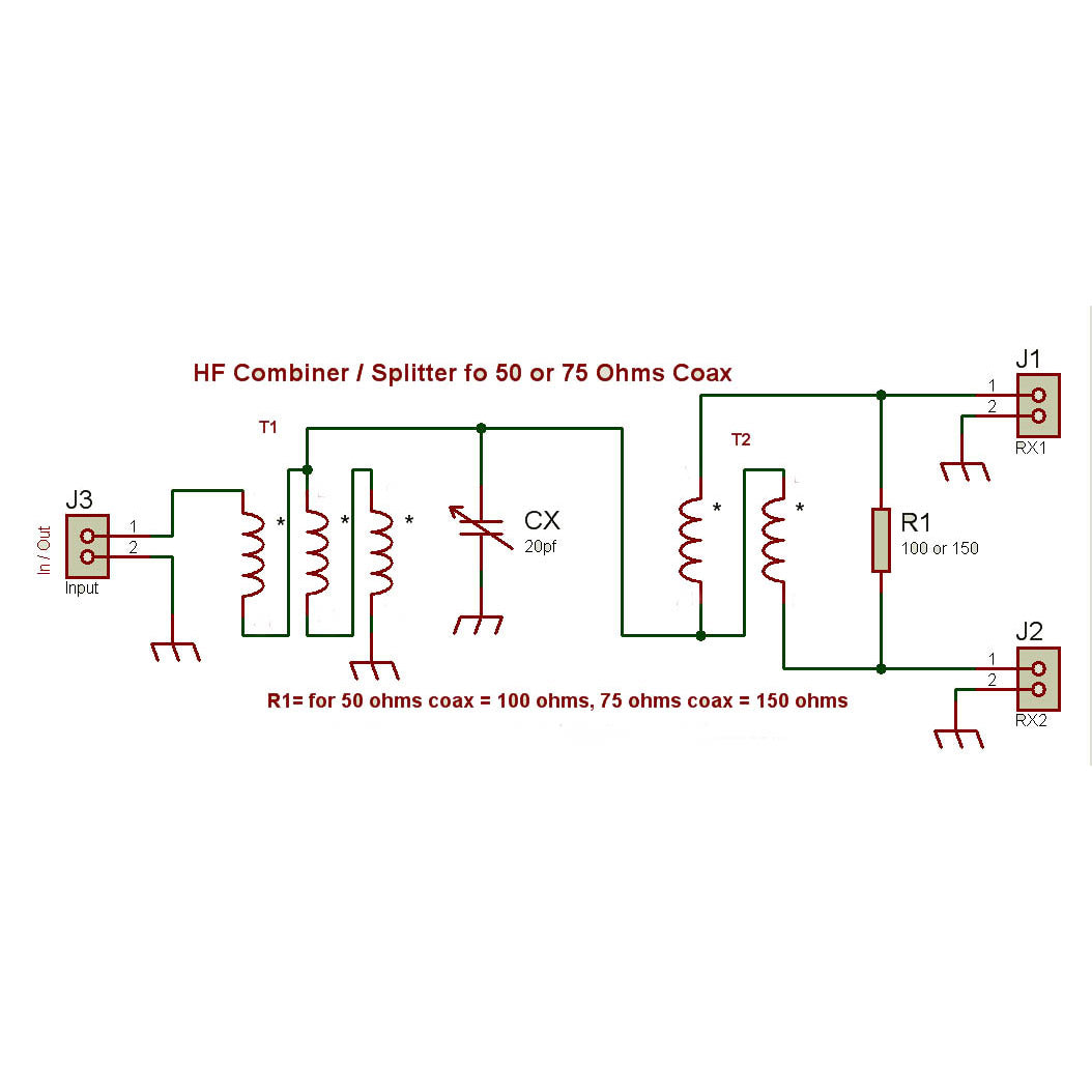 Antenna Splitter RX HF TV Satellite Coax Cable Signal Splitter 0.1-50 MHz 50 Ohm Finished Product