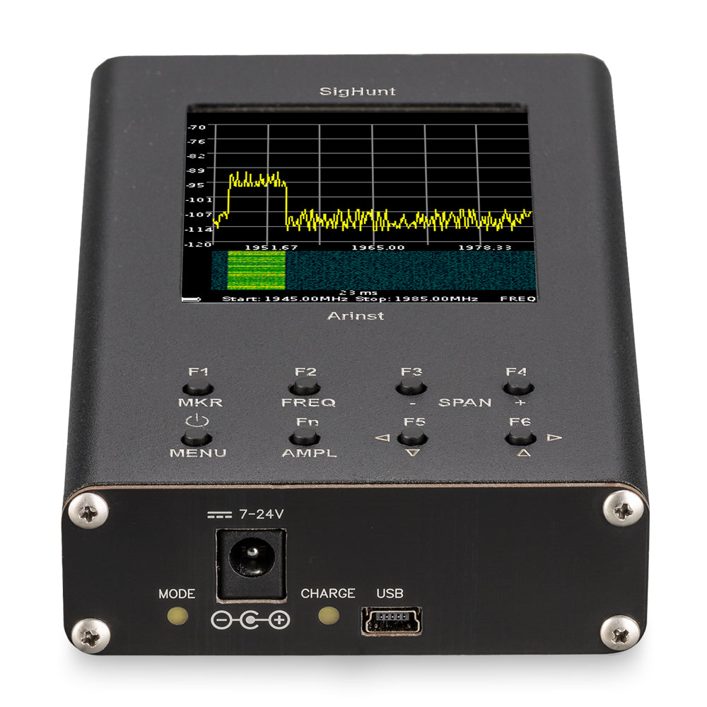 For Arinst SSA R2 Signal Hunter is an easy portable spectrum analyzer designed to display signal spectrums in the frequency range from 35 to 6200 MHz. The device allows to determine the amplitude and frequency of the spectral components that compose the signal.