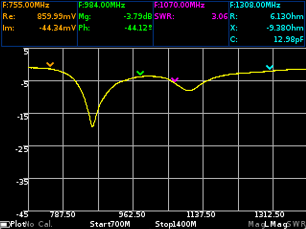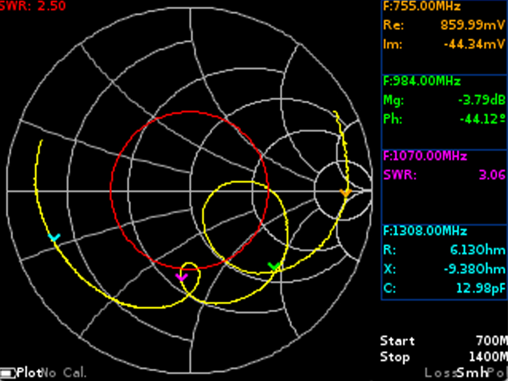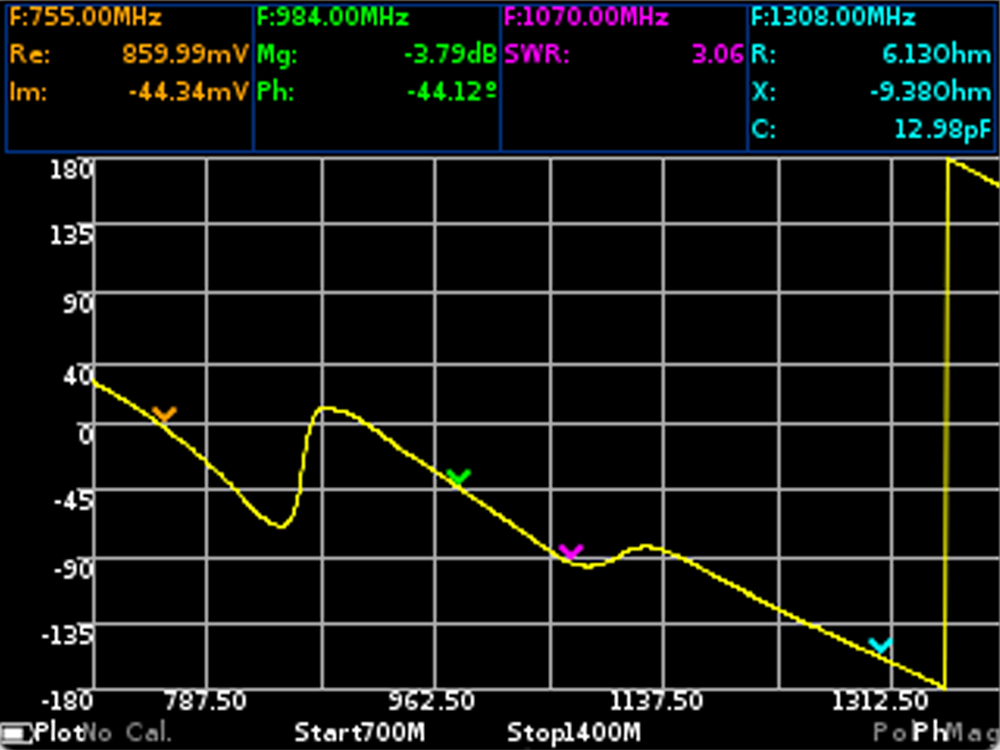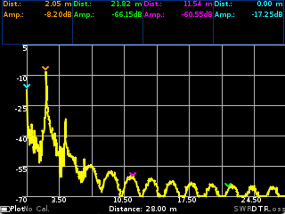 - Displayed graphs: the Smith chart; polar chart; the phase of the reflection coefficient; magnitude; logarithmic magnitude; VSWR, distance-to-fault; cable loss