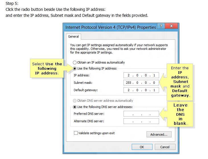 Configure your computer's local network adapter to below IP and it's plug and play!