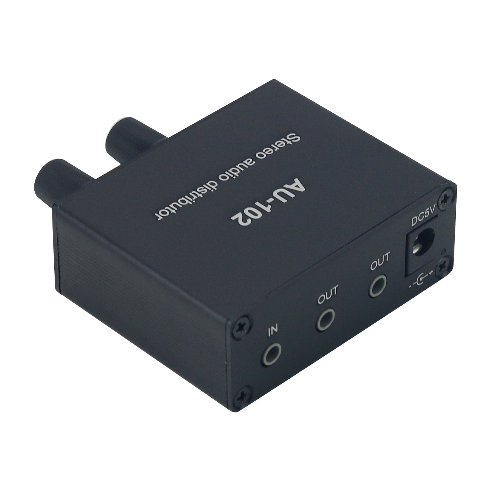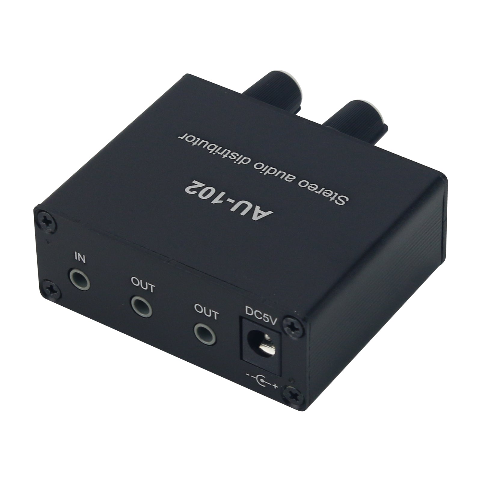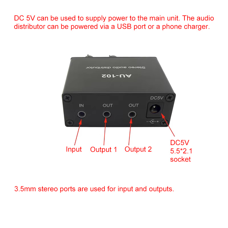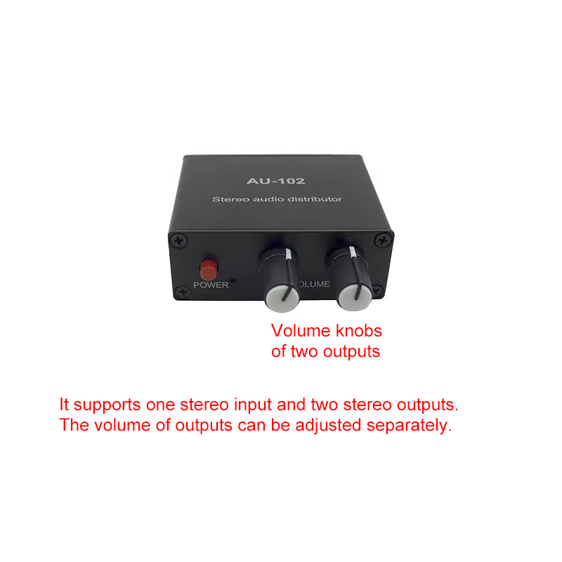 AU-102 Stereo Audio Distributor Audio Splitter Box Supporting 1 Input 2 Outputs + USB Power Cable