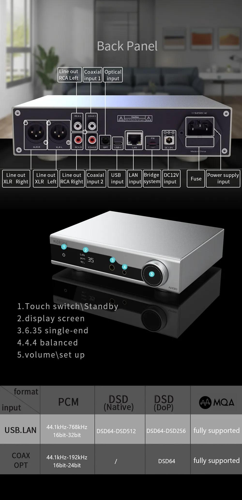 AUDALYTIC White AH90 DAC Network Audio Streamer AK4499EX Decoder Headphone Amplifier for ROON Bridge
