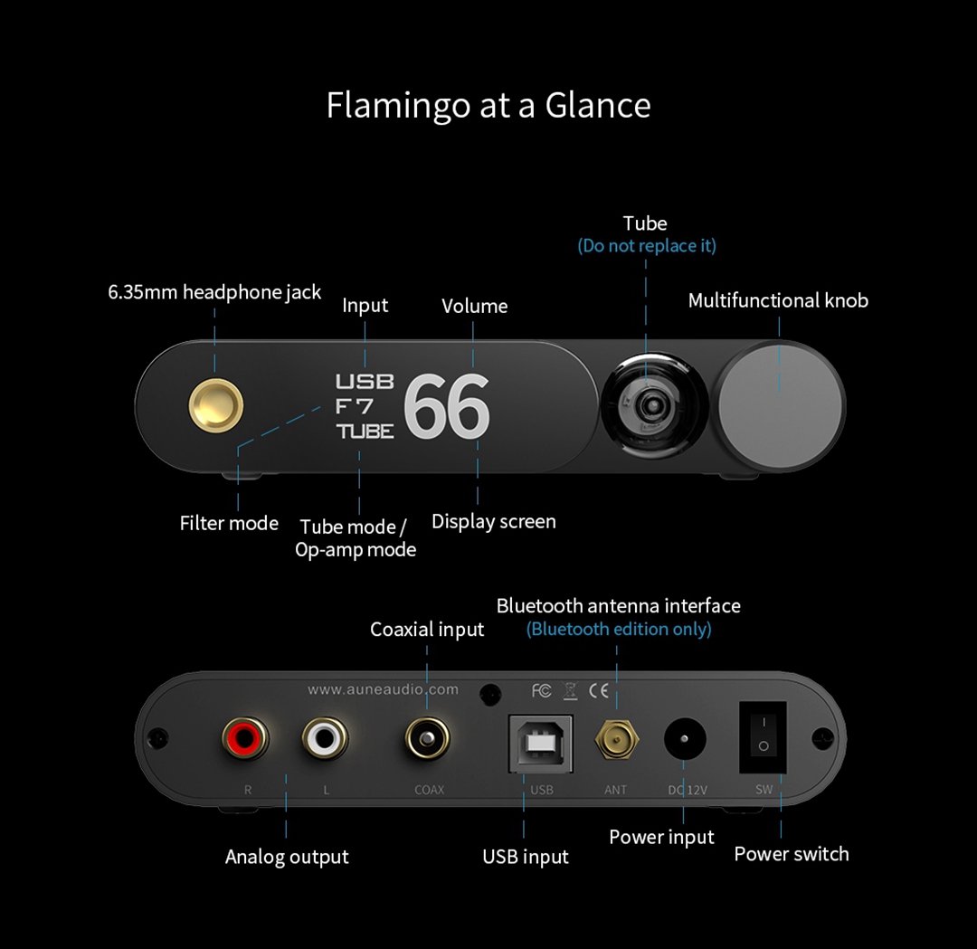 AUNE FLAMINGO Bluetooth Version Audio Decoder DAC Electronic Tube Amplifier Support OP AMP Mode PCM32bit/768k