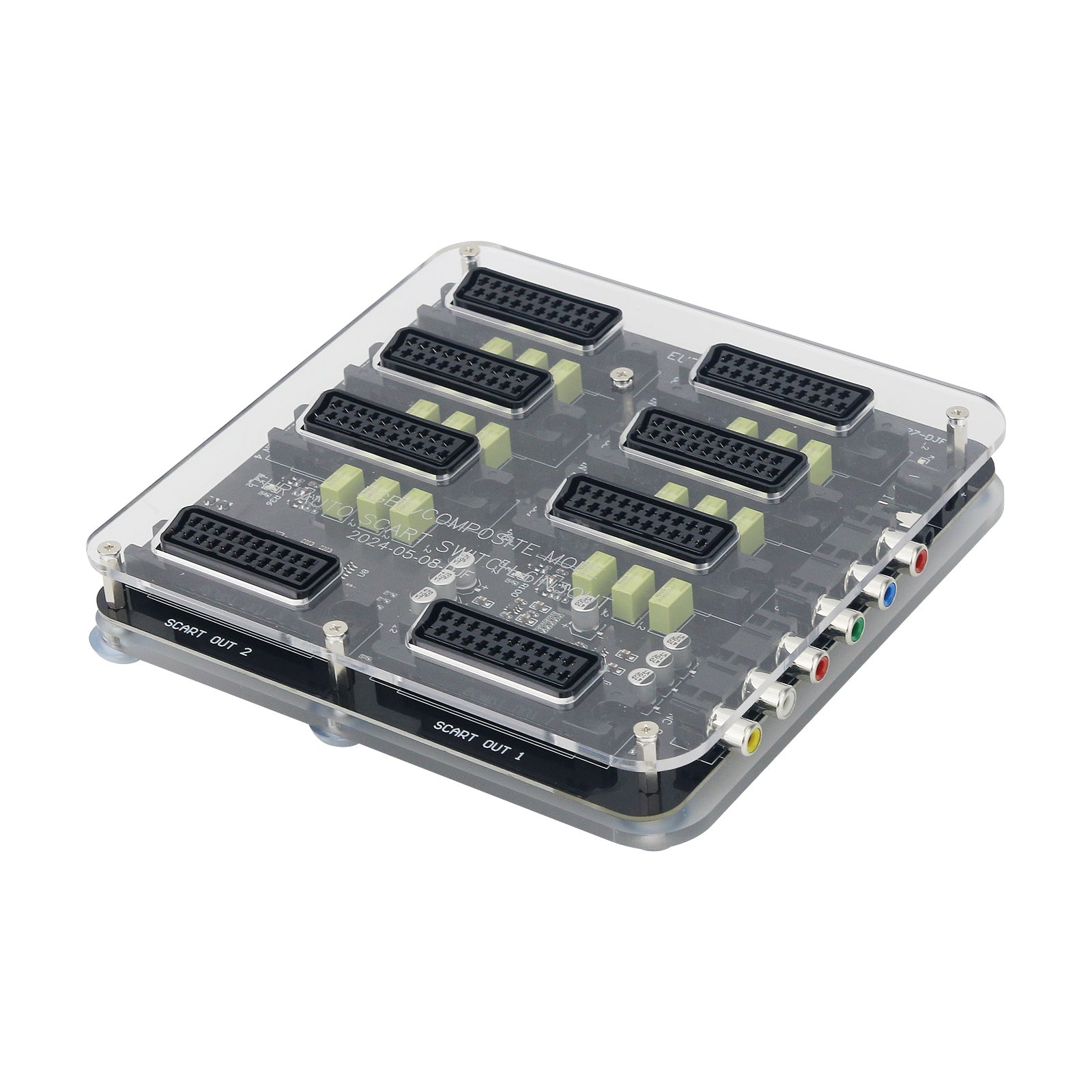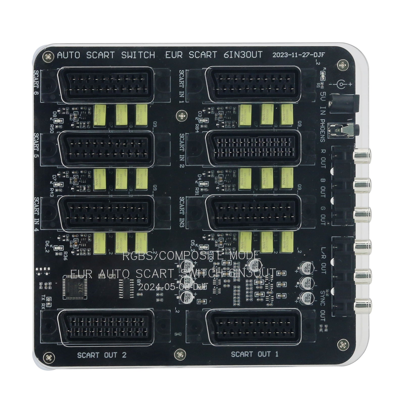 - It can input 6 sets of EUR SCART devices at the same time, 2 sets of EUR SCART outputs and 1 set of RGBS outputs (RGBS is generally connected to a monitor with RGBS input, and the monitor needs to be connected with a BNC to RCA connector, which cannot be used by ordinary TV), and 3.5 audio outputs are provided with headphone holes.