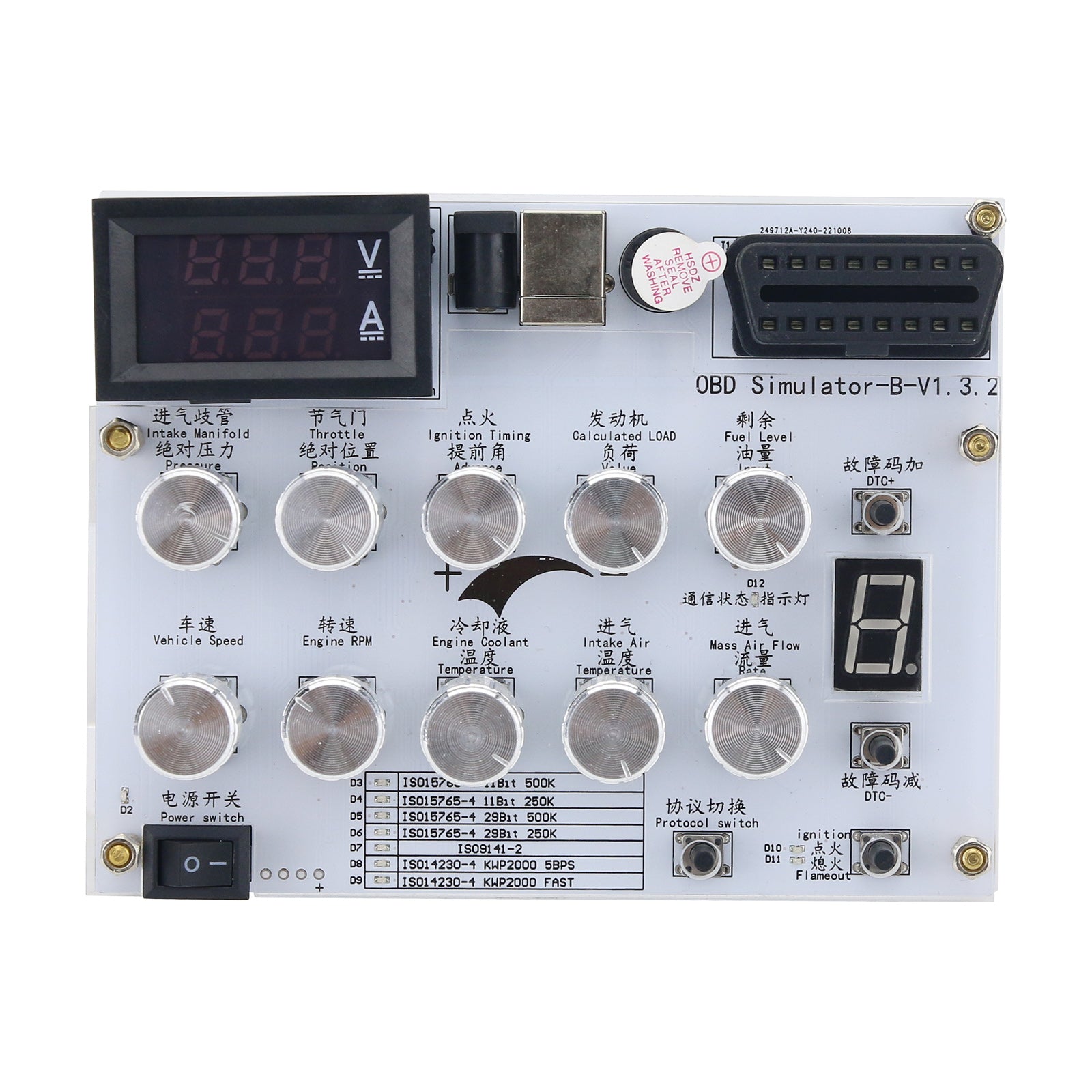 Automotive ECU Simulator OBD Simulator with Accessories for Passenger Cars ELM327 Development