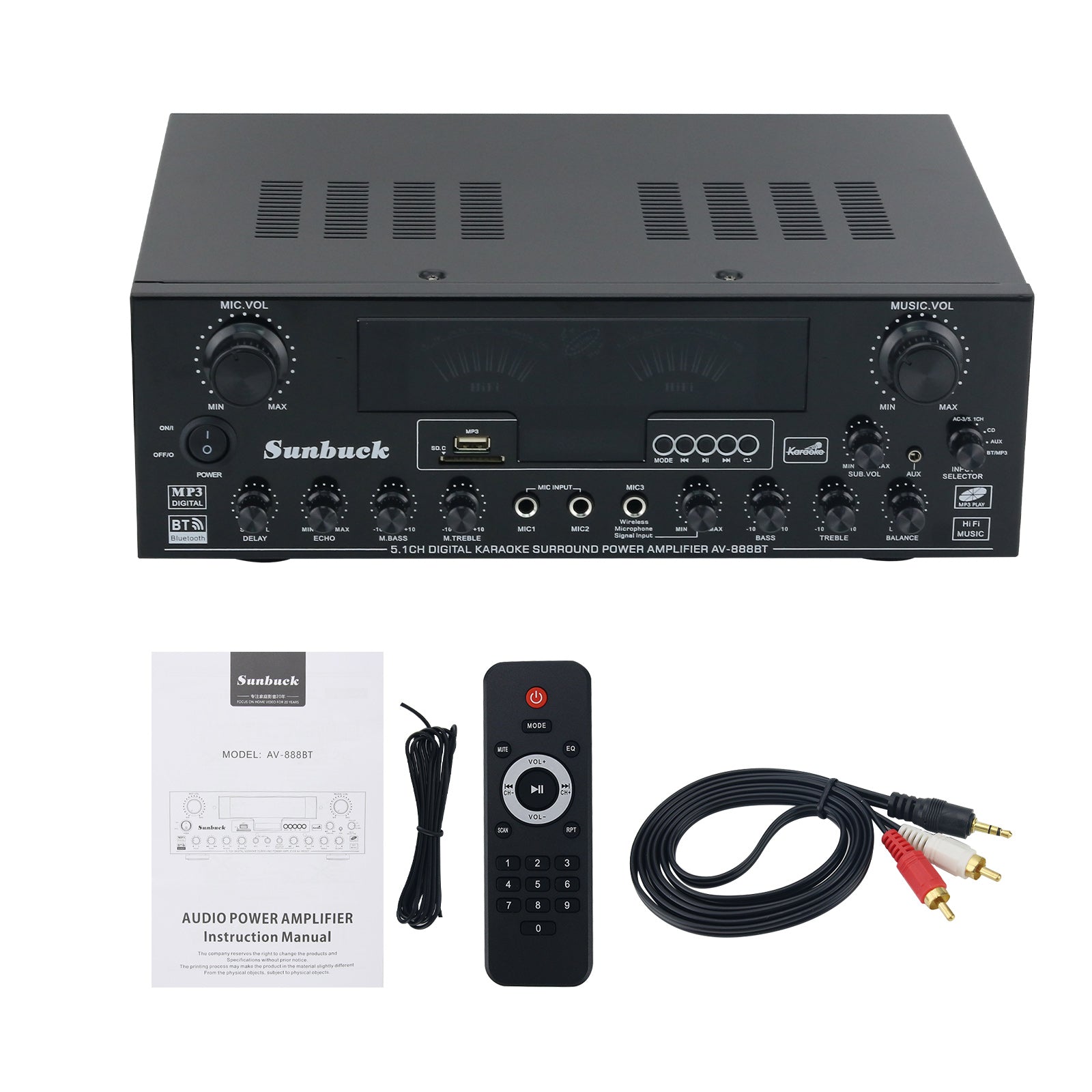 AV-888BT (AV-888) 900W 5.1 Channel Home Amplifier Hifi Stereo Karaoke Audio Amplifier for Subwoofers