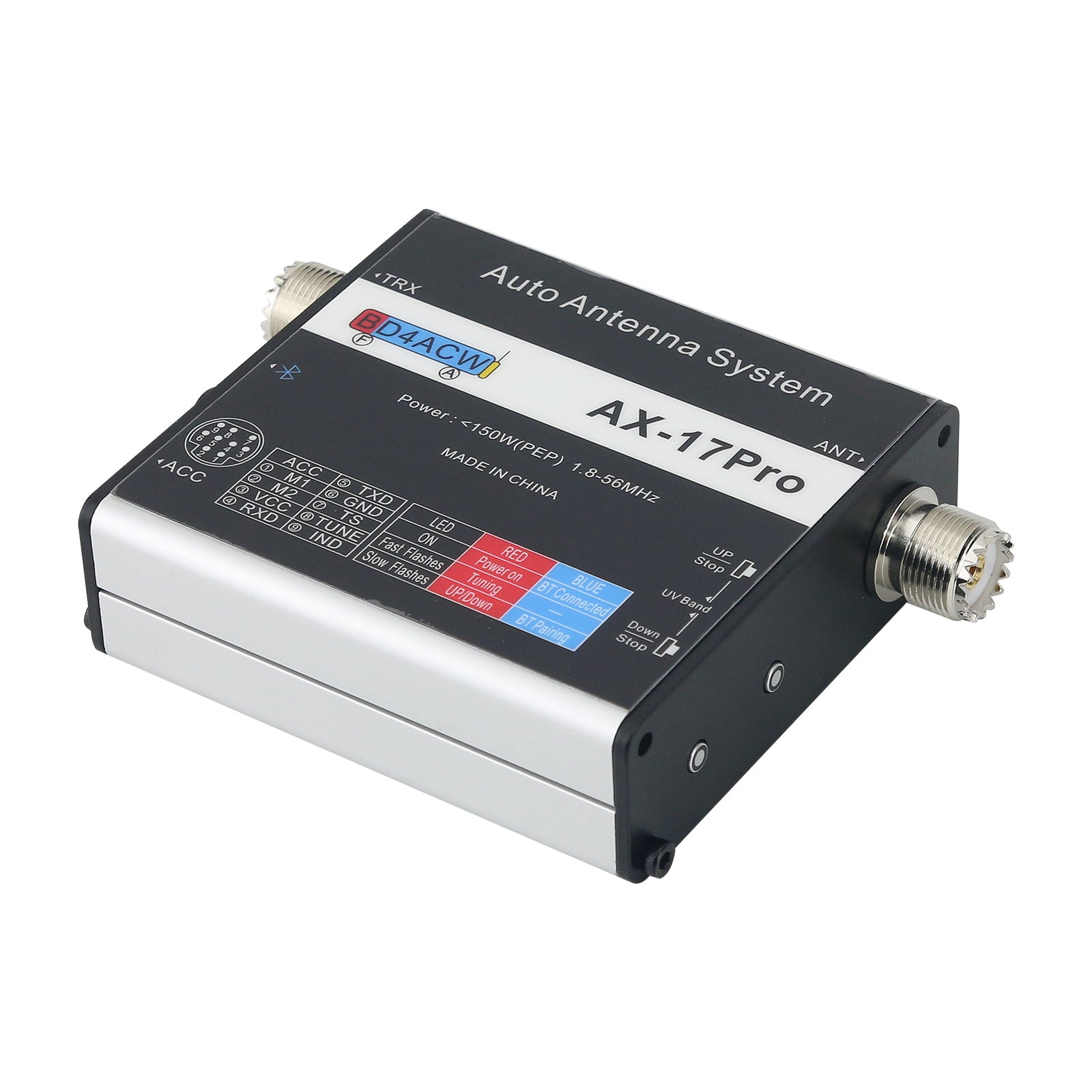 * Built-in Bluetooth module allows for setting the transceiver and antenna type via an app for Android, and controlling the antenna.