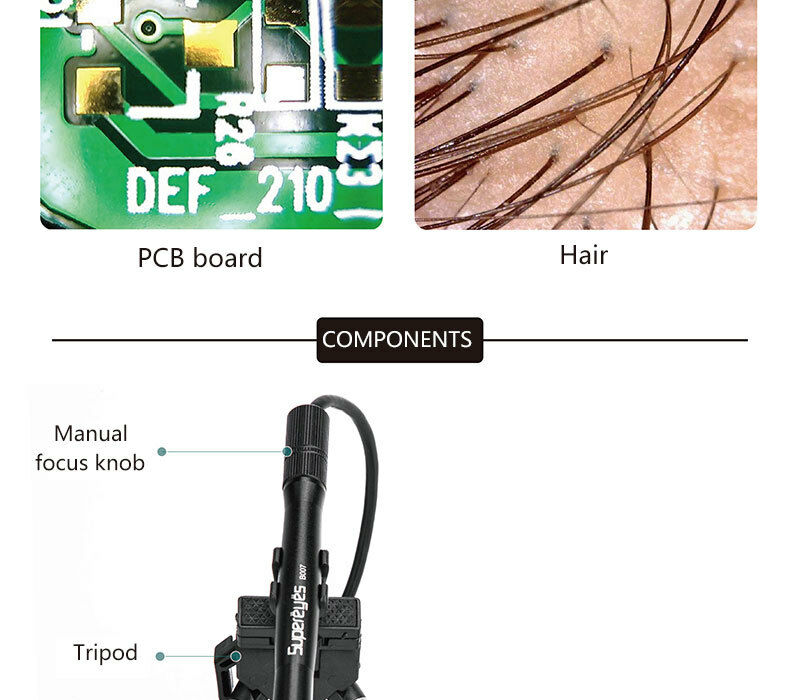- Slim microscope body compared with traditional microscopes or other brand or non-branded USB microscopes.
