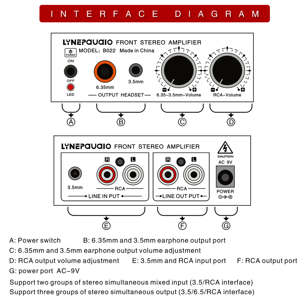 - Interface: 3.5mm, 6.35mm and RCA interface
