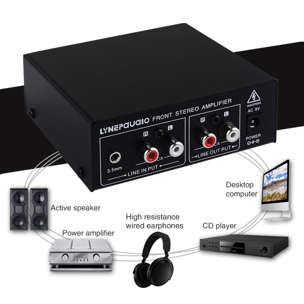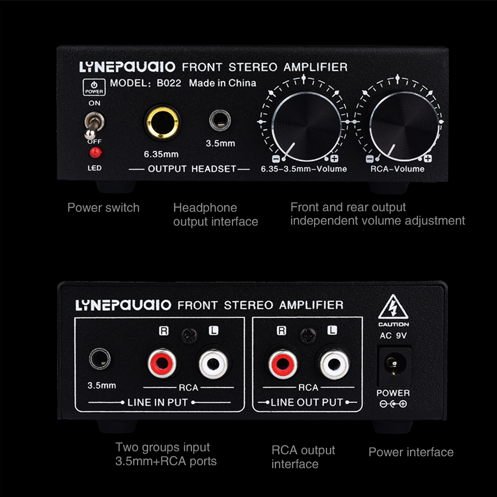 B022 Stereo Preamplifier Preamp Active Speaker Headphone Preamp with 6.35mm and 3.5mm Interfaces