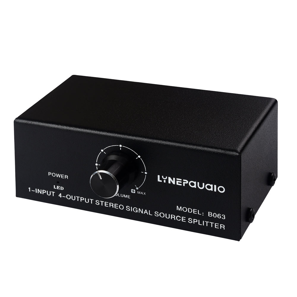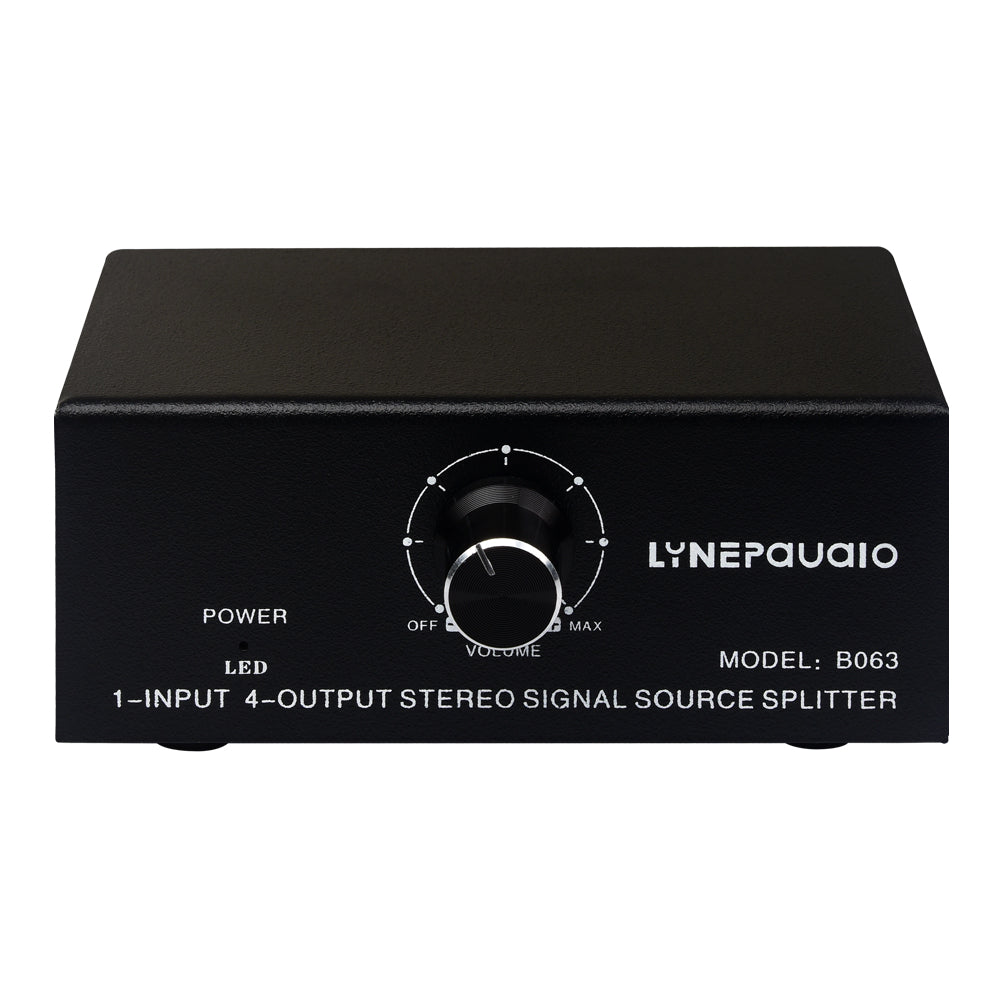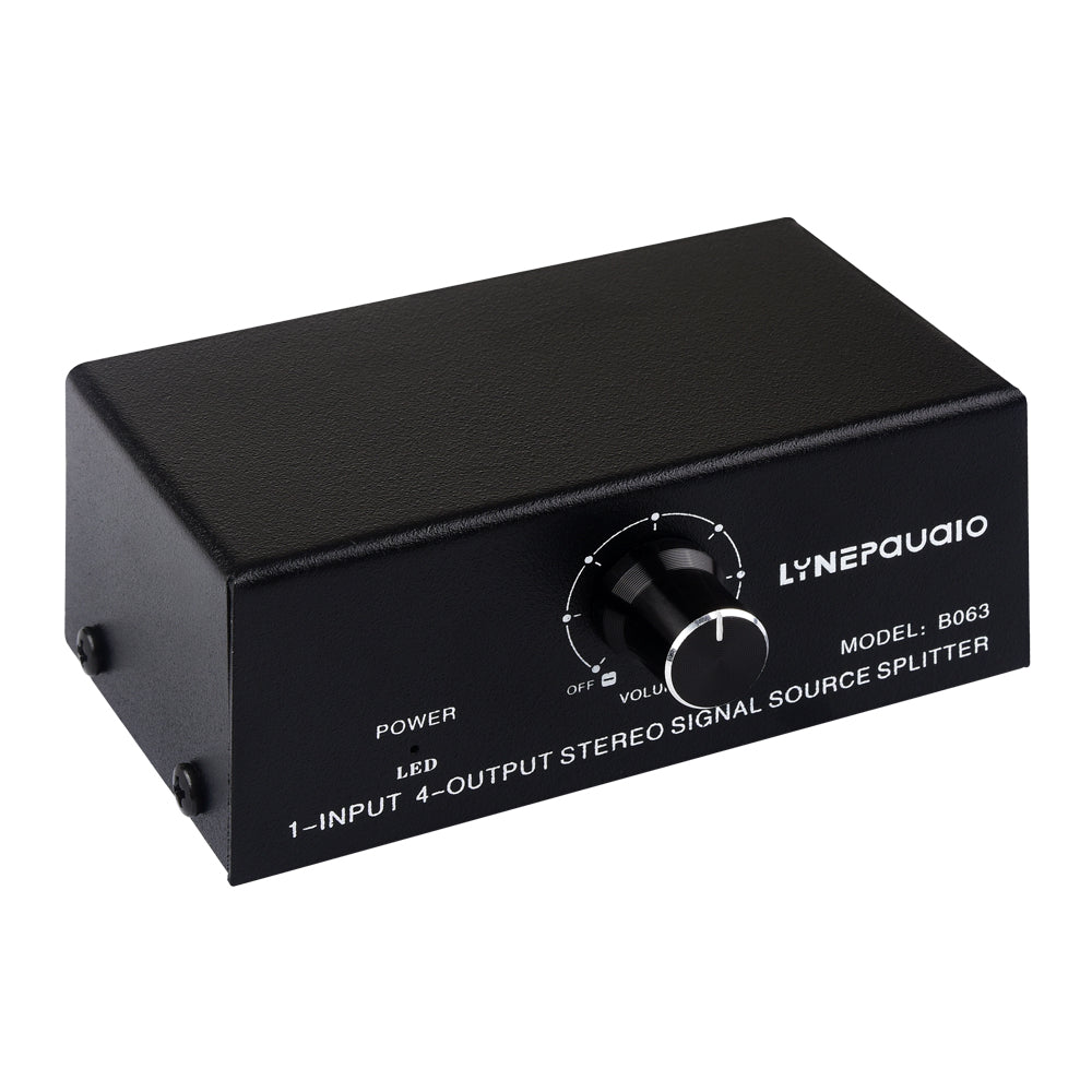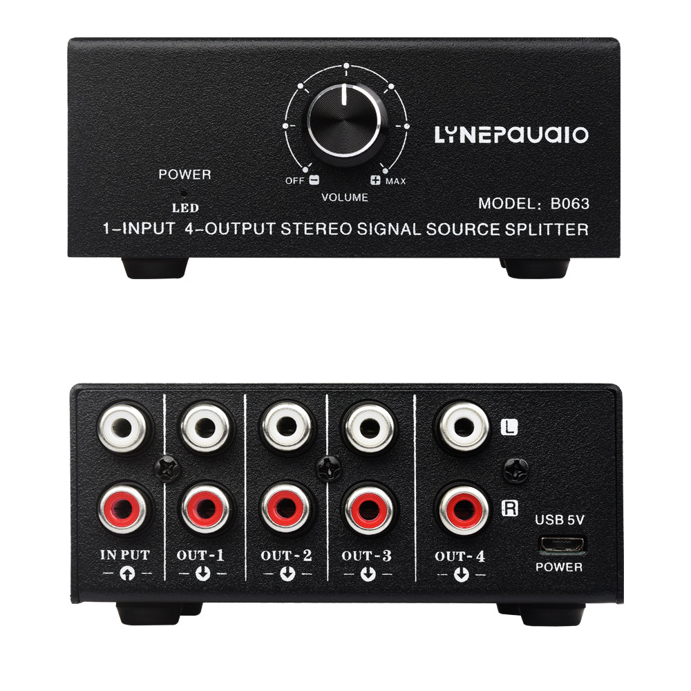 B063 1-Input 4-Output Audio Signal Splitter Box Stereo Signal Source Splitter with RCA Ports