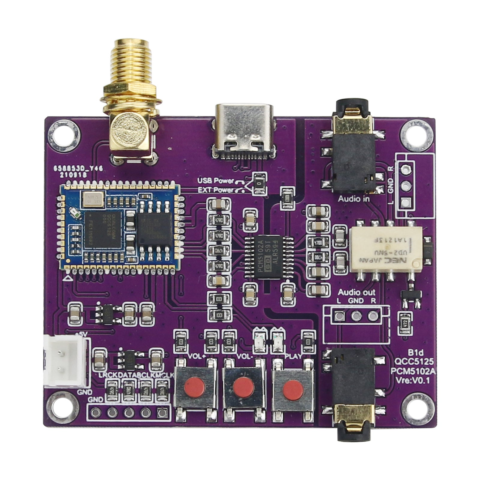 - Decoding chip: PCM5102A