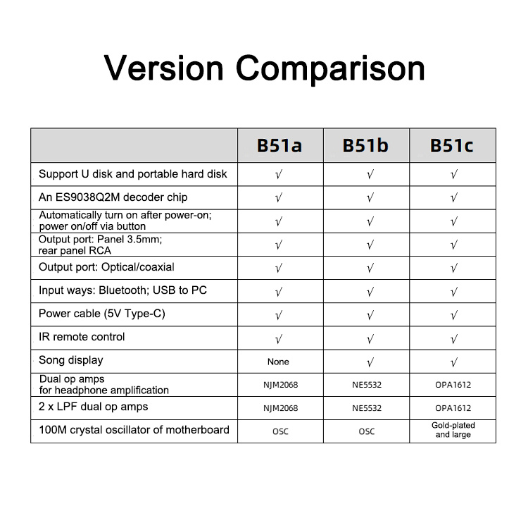 B51A Lossless U Disk Player BT5.0 ES9038Q2M DAC Headphone Amp (without Screen) for Phone APP