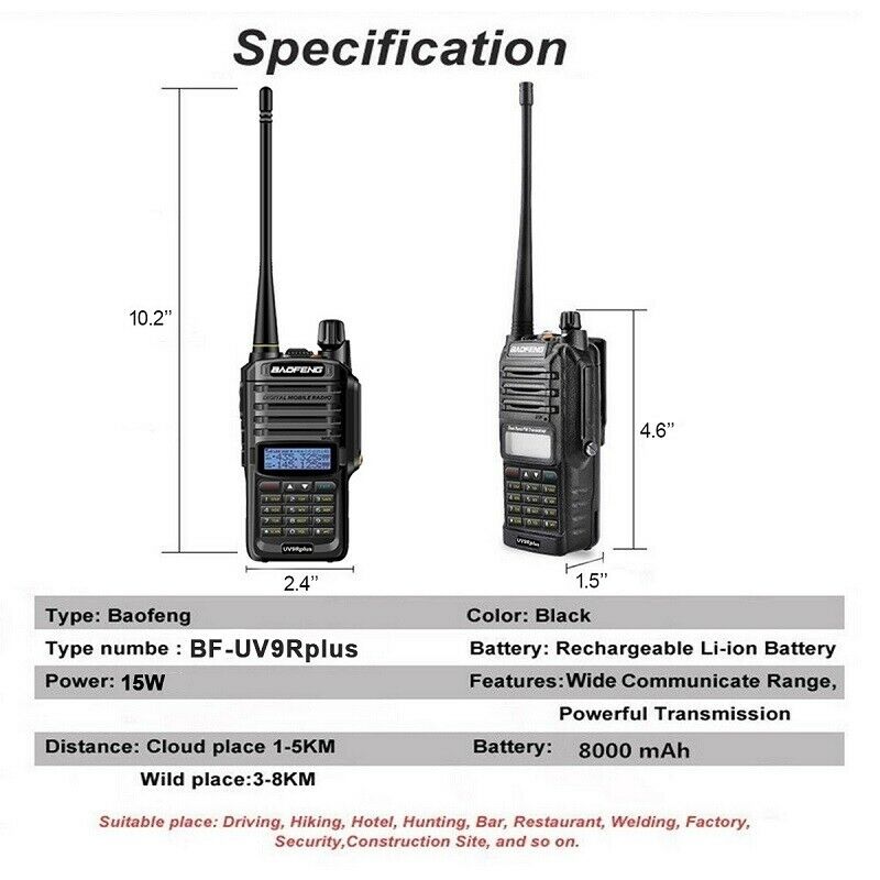 Baofeng UV-9R Plus Walkie Talkie 15W VHF UHF Radio FM Ham Dual Band Handheld Transceiver