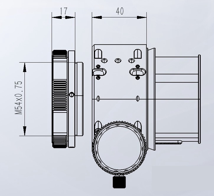 - M54 standard thread at the end of the focusing cylinder.