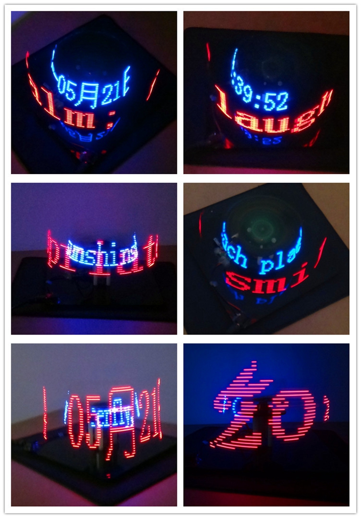 - Can send text, pictures, gif animation, calibration time through the host computer, the host computer software supports Chinese and English input. 2 sets of text can store a total of 850 Chinese or English characters! Monochrome text display! Can store 30 pieces of 32 pixels wide * long (10-200 pixels of the white background and black text monochrome image), and a group of up to 20 pictures composed of simple gif animation, using high-performance motor FR370, the speed is high enough to make the display stable.