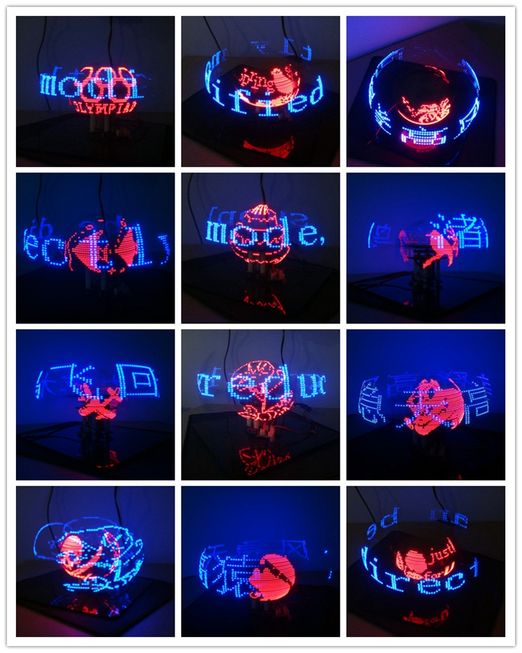 - System power supply voltage 12V, 2A (please use your own power), rotating motherboard using STM8S105K4T6 single-chip control, plug-in 8 Mbit flash storage text, pictures, animation!