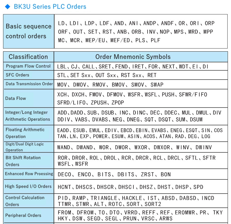 - Compatible with all instructions of FX3UPLC, and compatible with FX3U in maintaining the range of component power outage