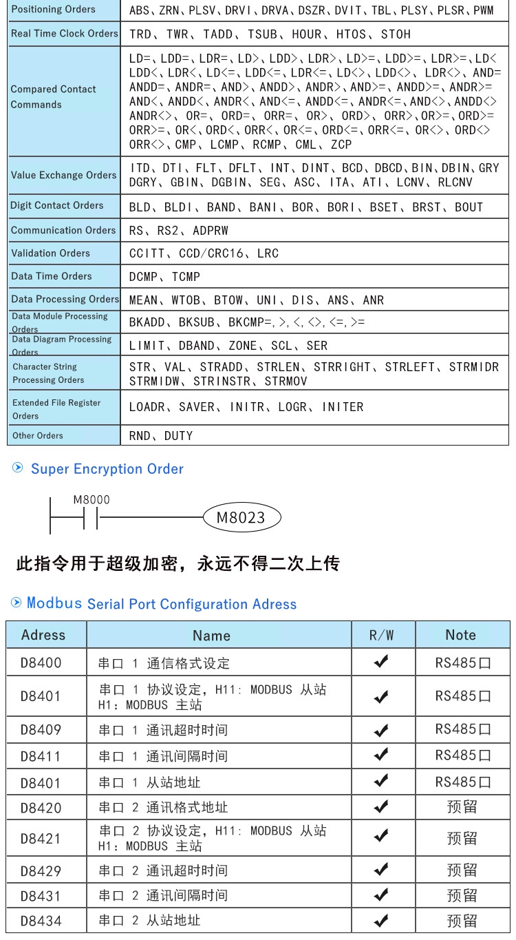 - Batch processing mode, input and output refresh instructions, equipped with pulse capture function