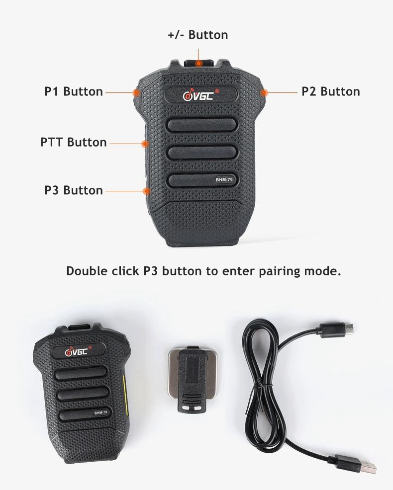 Black BHM-79 Bluetooth Wireless Walkie Talkie Microphone Lightweight Handheld Mic for VR-N7500/N75/N76/N65