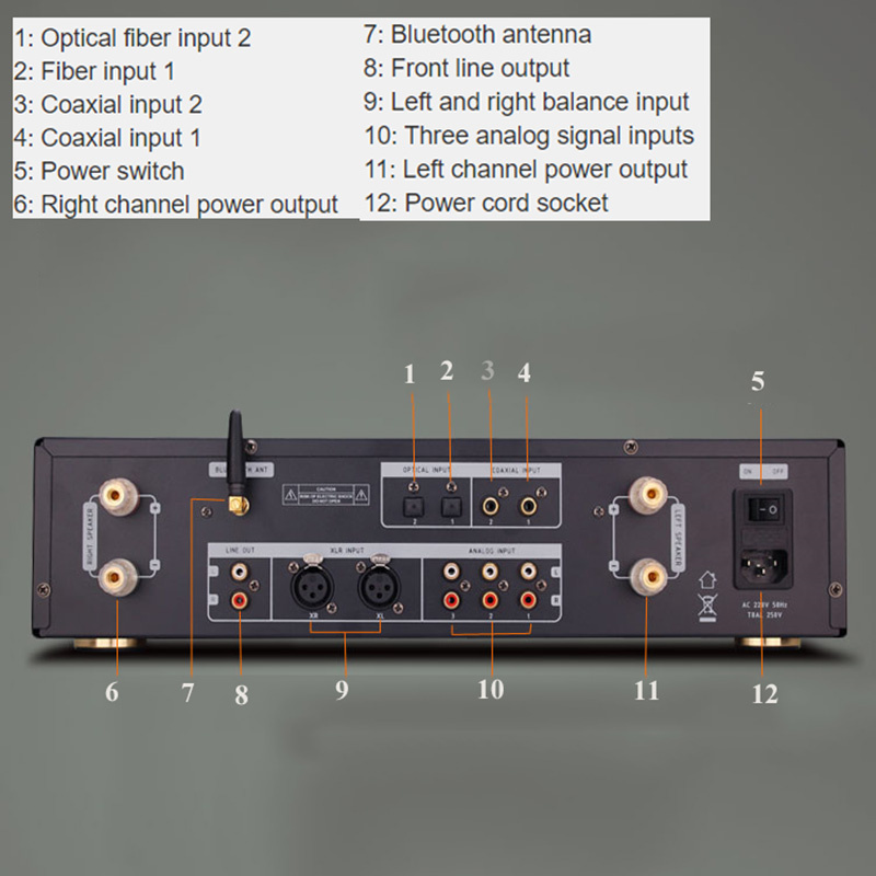 - The machine has class AB working status, featuring natural sound, rich details, good analytical power, strong control, balanced three segments, clear hierarchy, clean and powerful low frequency, deep diving, thick and stable medium frequency, transparent and clear high tone, comfortable listening, independent design, ± 10dB adjustable range of high tone and low tone, and left and right balance adjustment.